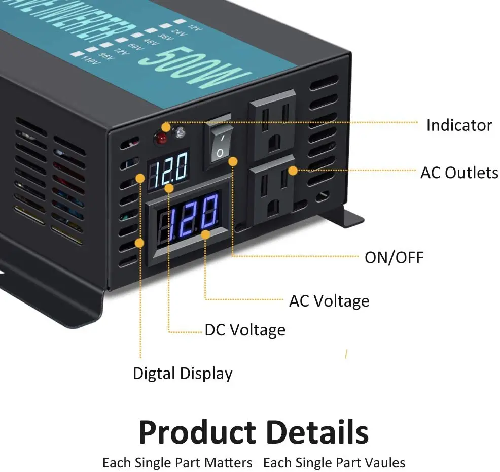 Высококачественная истинная медная индуктивность, фильтрует форму волны, обеспечивает настоящий выход чистой синусоиды переменного тока, защищает ваше оборудование.