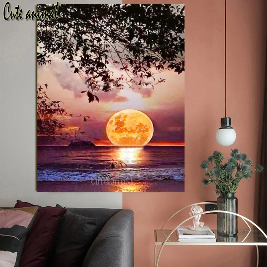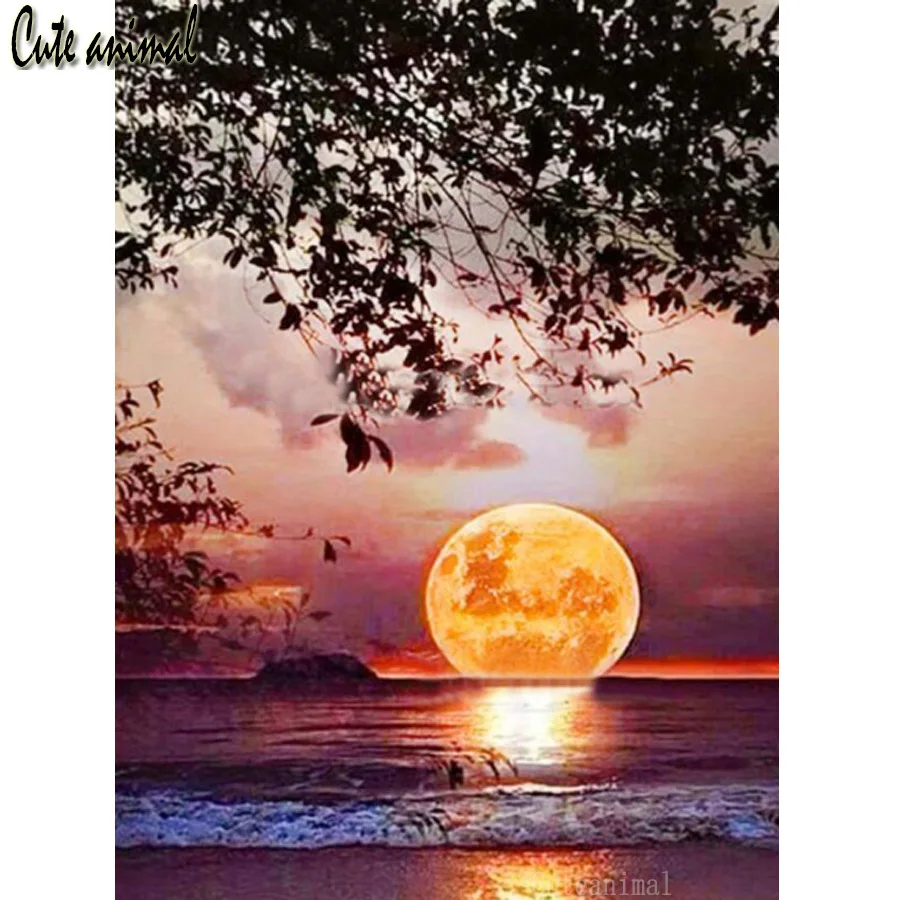 5d алмазная картина Луна озеро пейзаж Картина Стразы ручной работы подарок Сделай Сам Алмазная вышивка мозаика продажа украшение