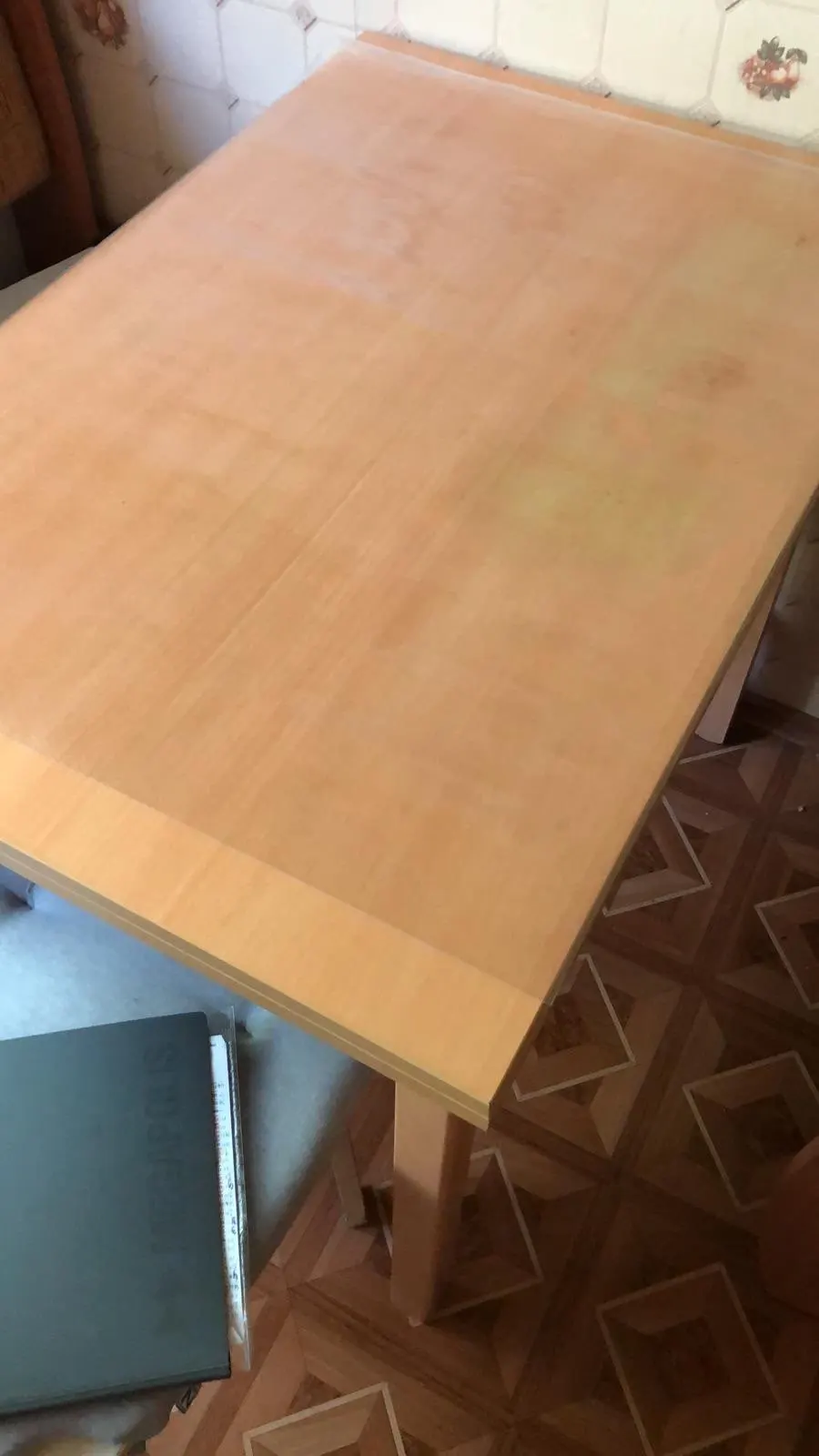 Неважной какой формы у вас стол. У меня прямоугольный с круглыми краями. Использовал лезвие из монтажного ножа и аккуратно под натяжением разрезал.Единственное это пузырьки (выгонял карточкой, но ещё остались).Ах да запах от изделий обязательно помойте Ферри