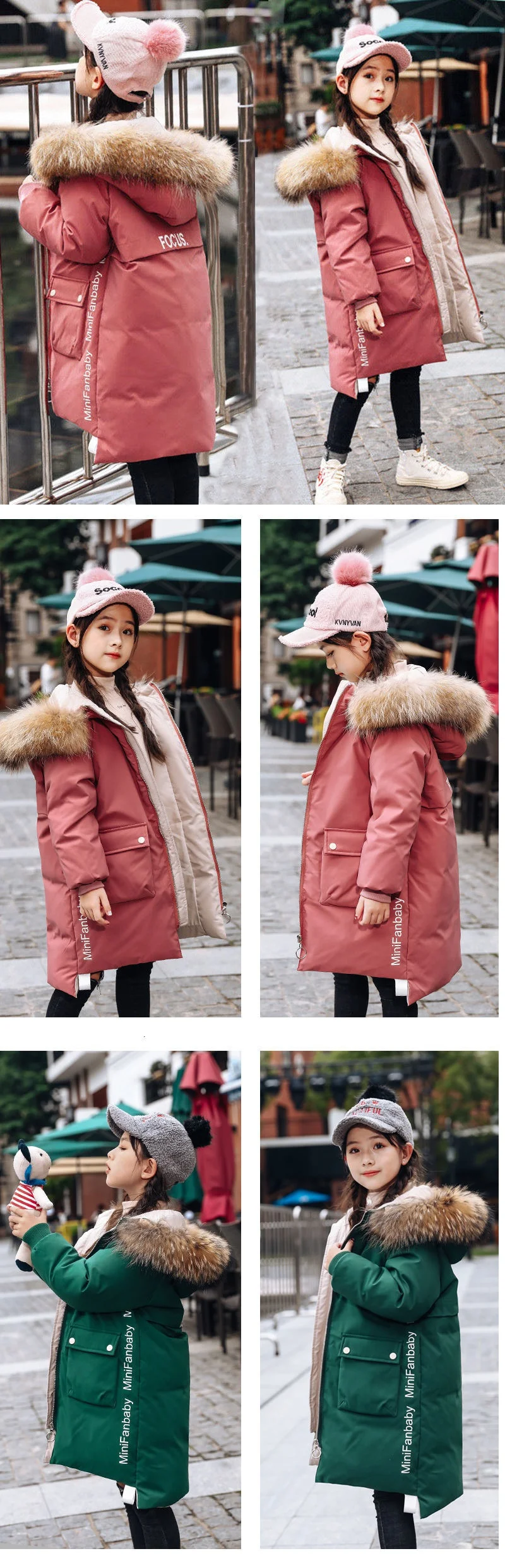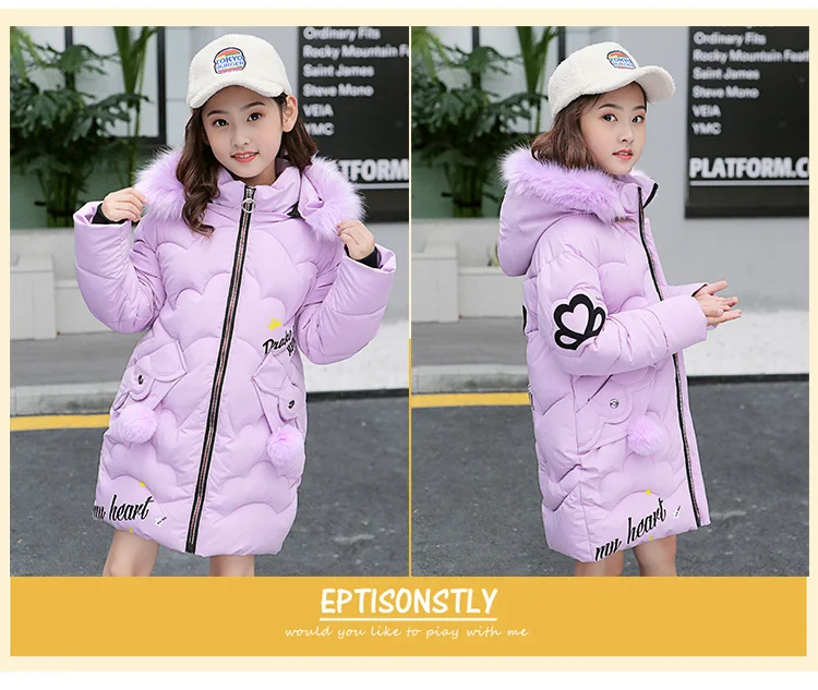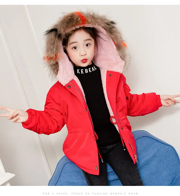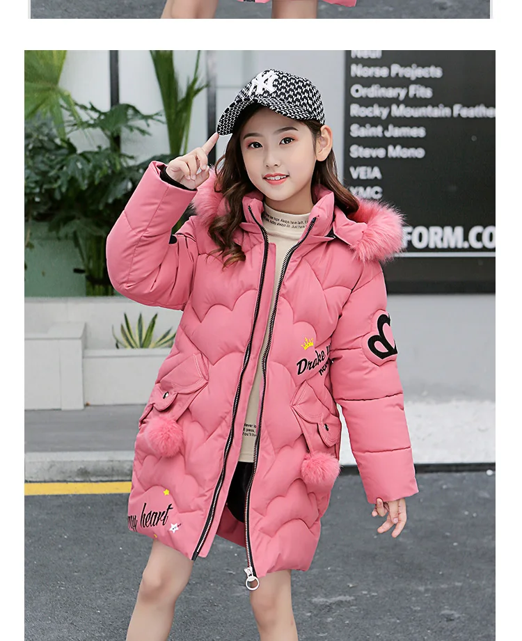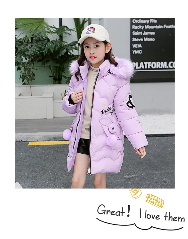 Куртка детская зимняя, на девочек 5-12 лет, с мехом, с капюшоном