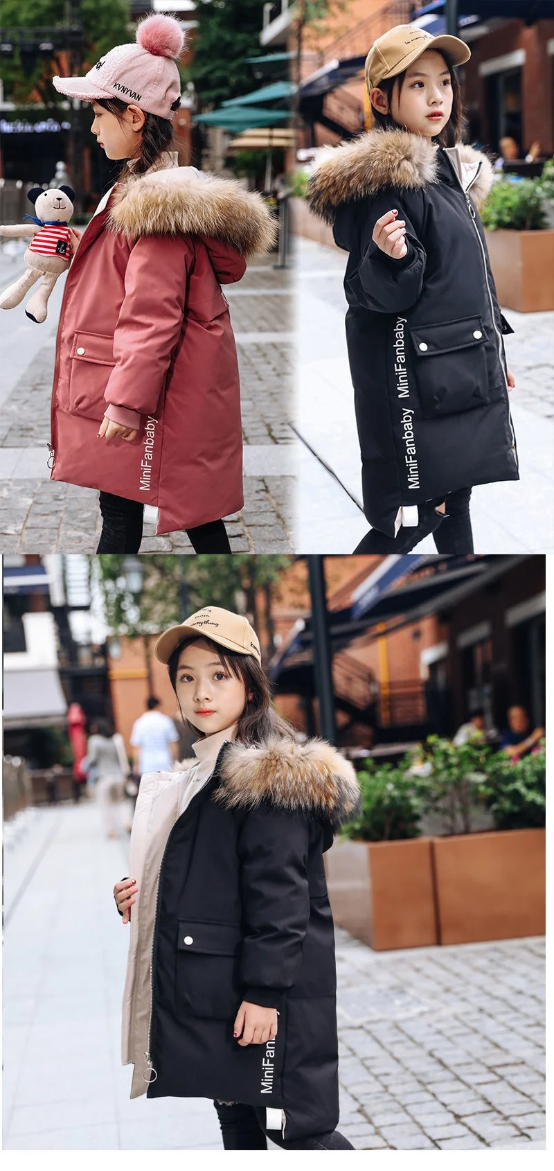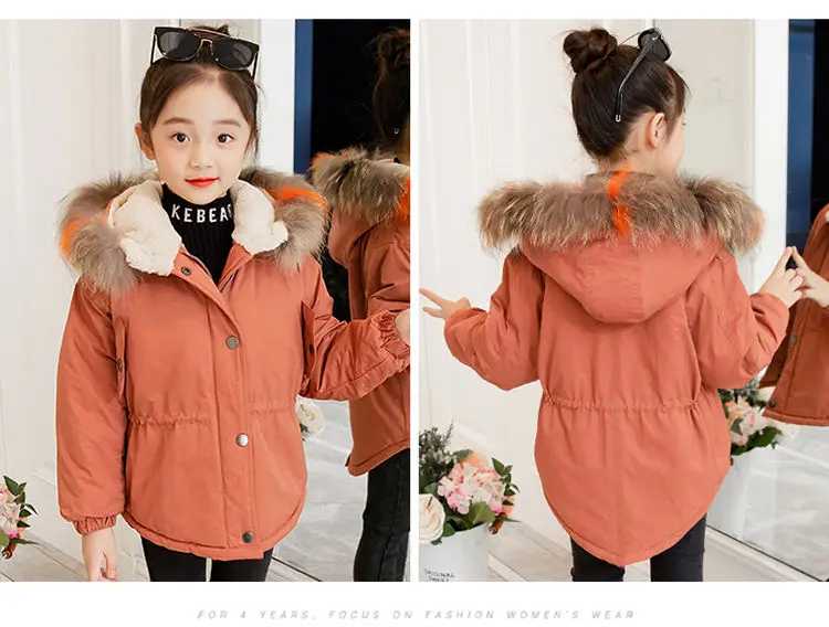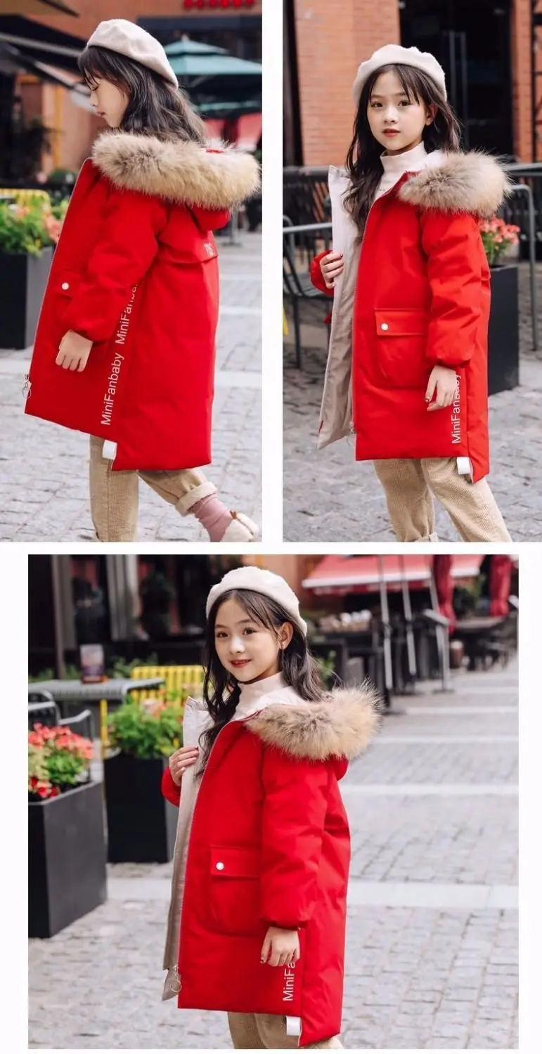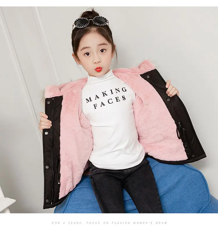 Куртка детская зимняя, на девочек 5-12 лет, с мехом, с капюшоном