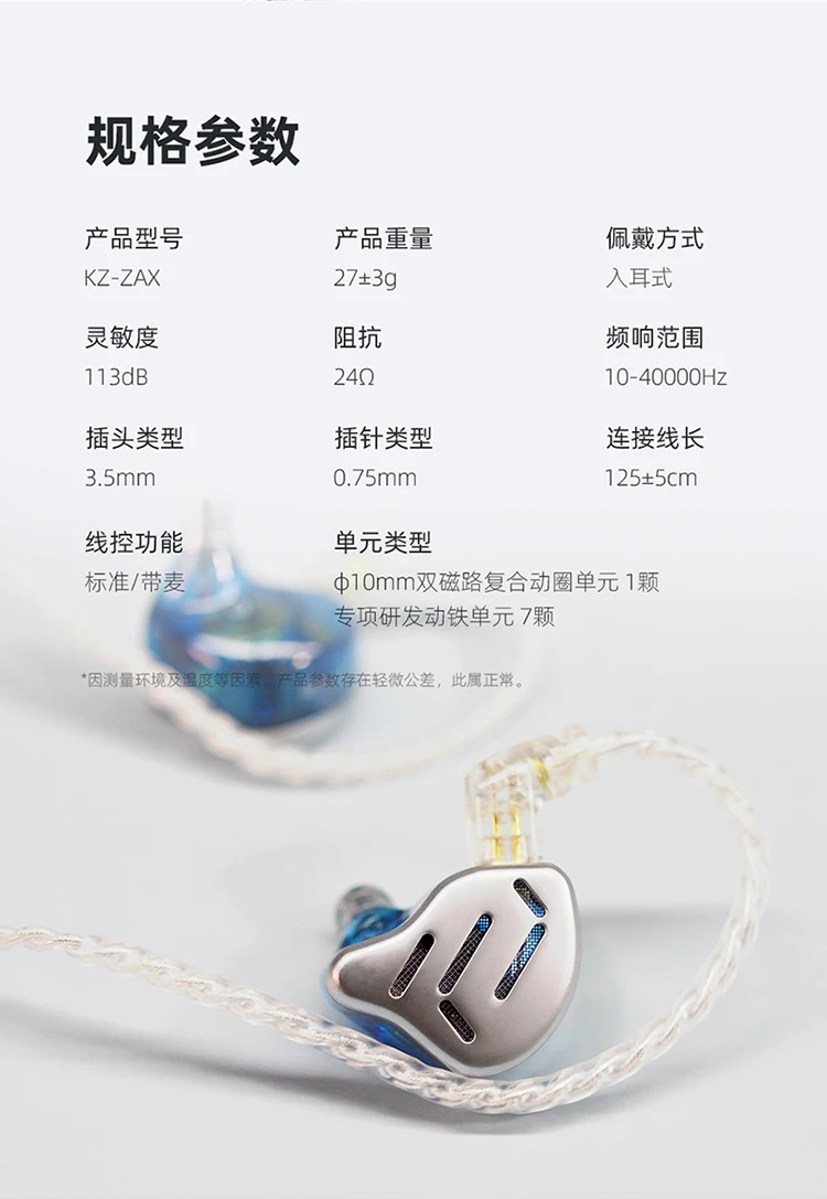 Название продукта: KZ ZAX наушникиСопротивление: 24ΩЧувствительность наушников: 111дб/мВтЧастотный диапазон: 10-40000 ГцPin Тип: 0,75 ммТип штекера: 3,5 ммКабель Длина: 1,25 ± 0,05 мЦвет: серебристый, черныйЕсть ли кабель: ДаИнтерфейс наушников: 2-контактный интерфейсС микрофоном: опциональноМожно ли заменить кабель: ДаКабель: 4-ядерный посеребренный обновления кабельБлок драйвера: 16 единиц, односторонняя 7 сбалансированных арматурных гарнитур + 1 динамический привод (7 специально разработанных сбалансированных арматурных устройств)(2*30019 закрытые сбалансированные вокальные детали арматуры + 4*50024 широкое звуковое поле + 1*30095 закрытый сбалансированный арматурный высокочастотный Овертон + 1 * динамический привод басов)