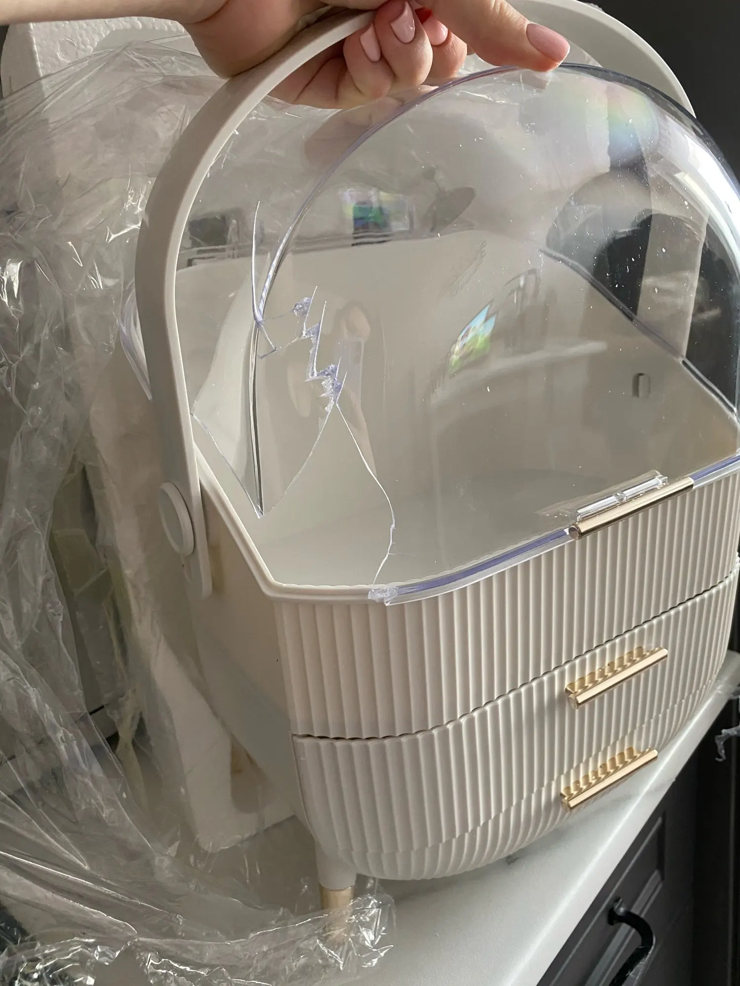 товар пришел в целостности, без каких либо повреждений, большой, поместилось много баночек/бутылочек