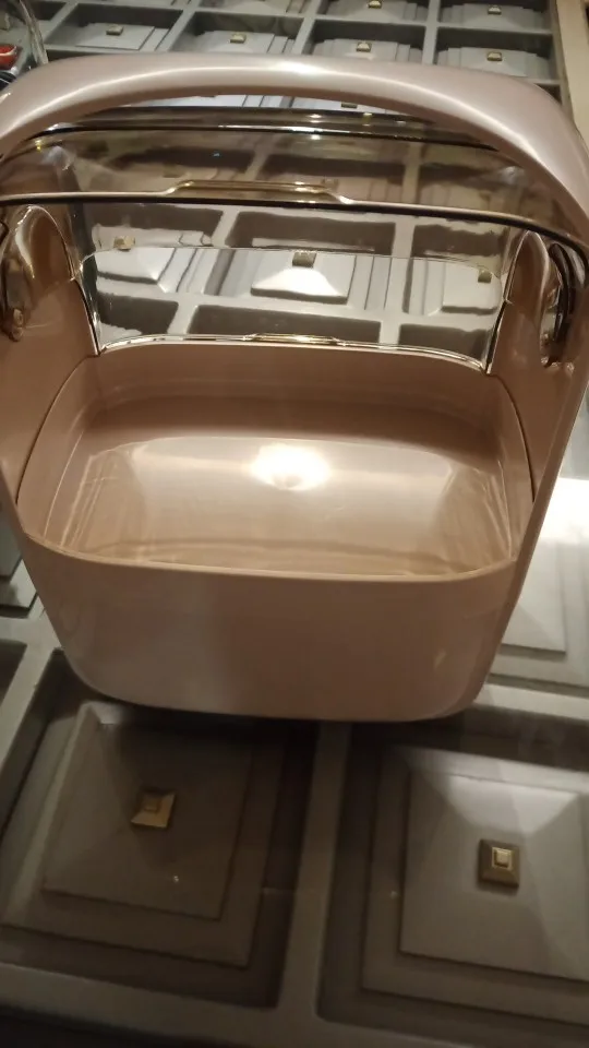 Очень красивый и вместительный. Соответствует описанию. Отлично запакован. Не обошлось без расстройства - одна дужка верхней крышки сломана, моментально возместили часть стоимости. Мне эта поломка не критична, продавец молодец.