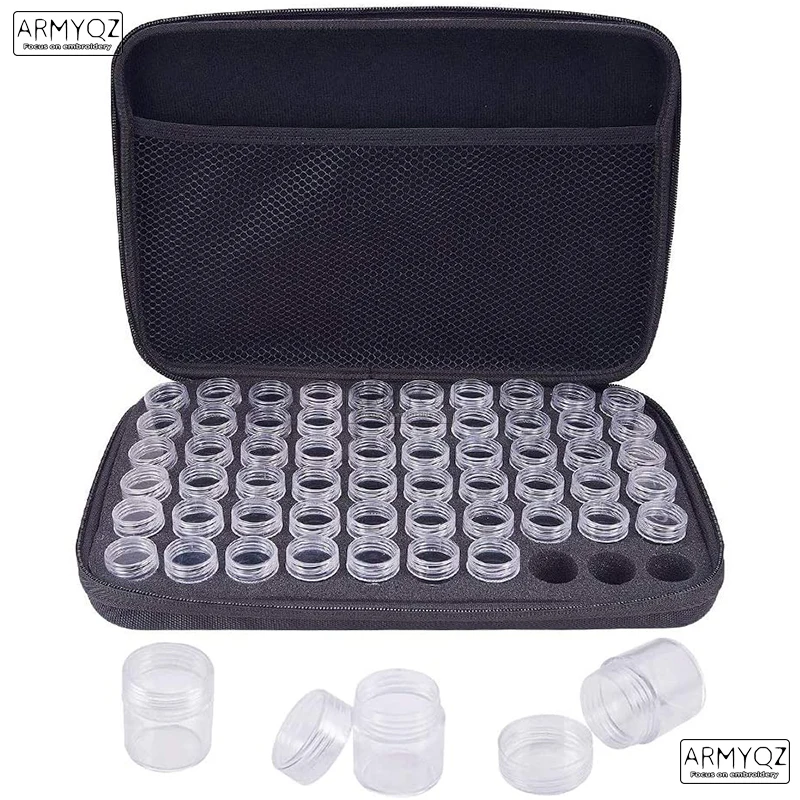 60 слотов коробки для хранения: посылка включает в себя 60 слотов маленькие прозрачные банки с крышками с большой черной защитной сумкой для рук, может удовлетворить ваши различные потребности.