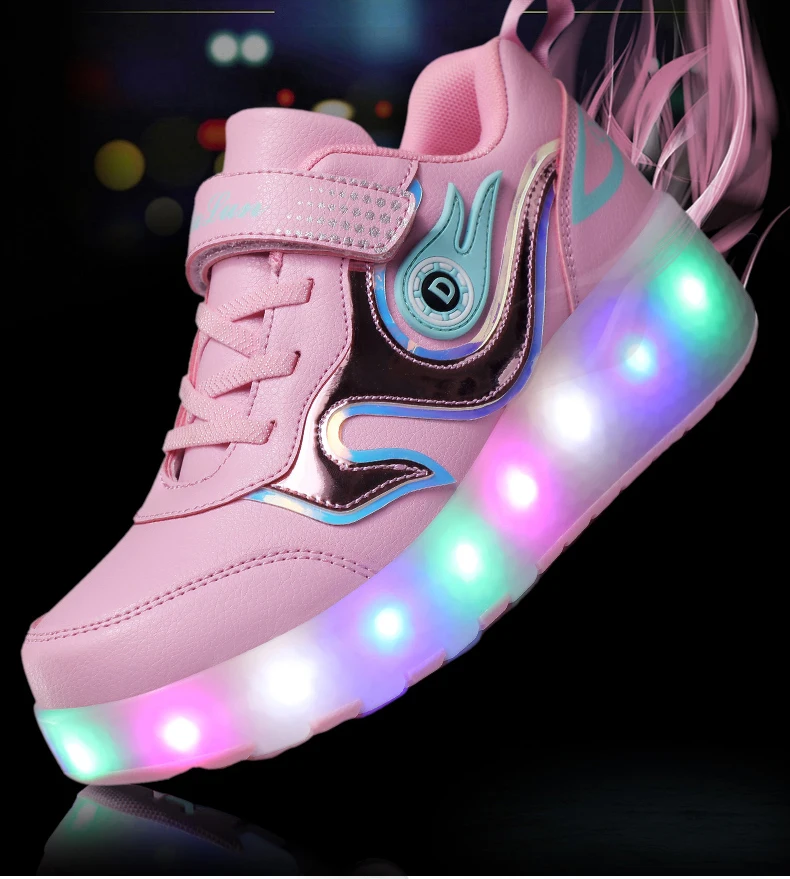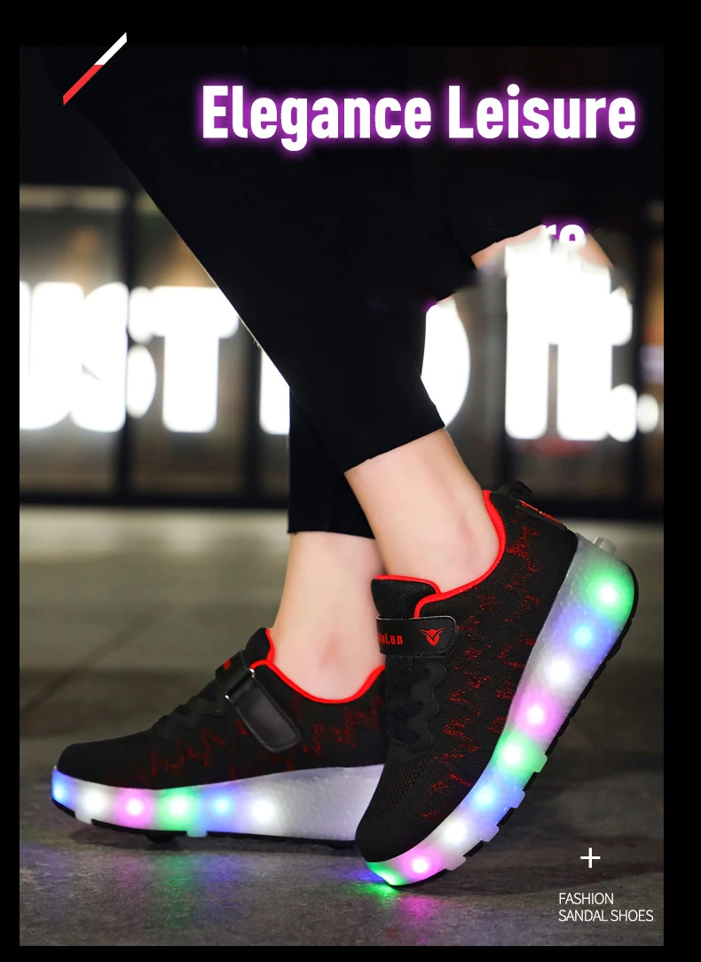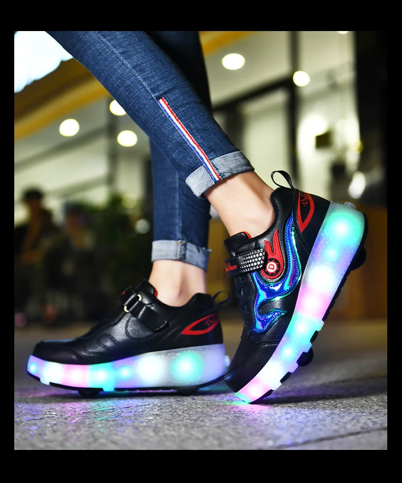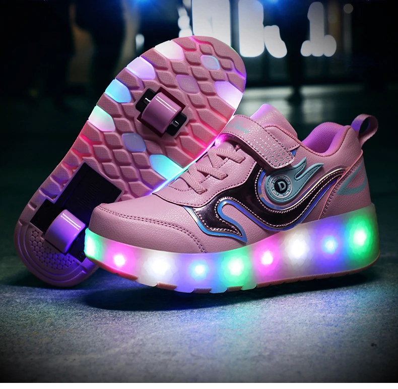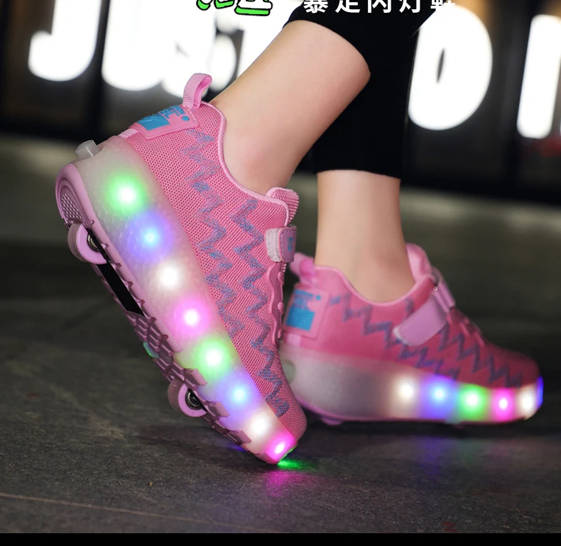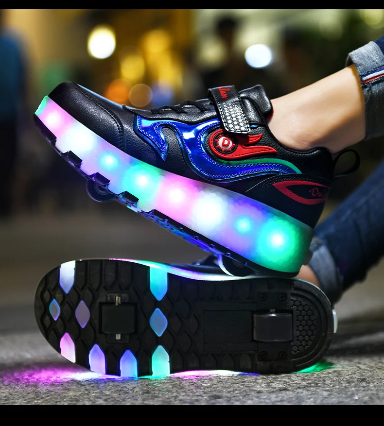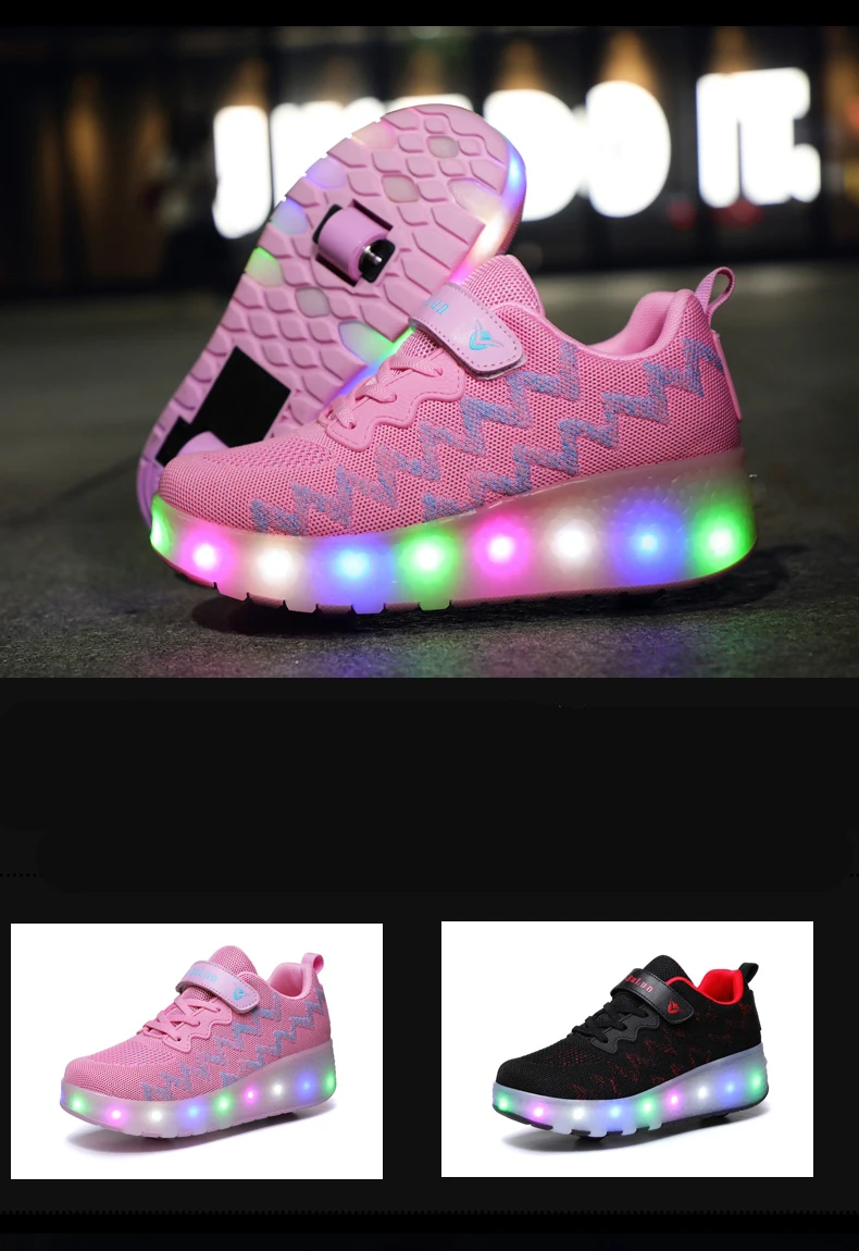 Светящиеся Роликовые кроссовки с двумя колесами, детская обувь для девочек и мальчиков, светодиодная обувь на колесиках, Детская светящаяся