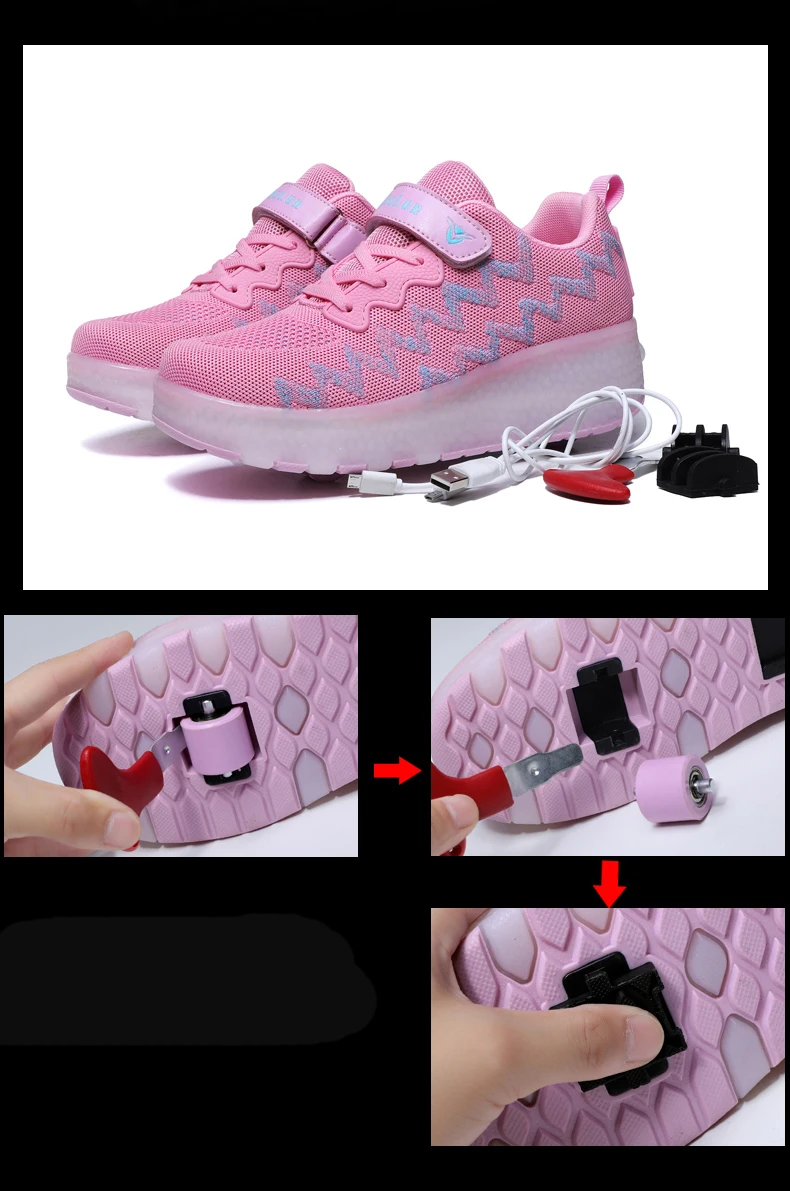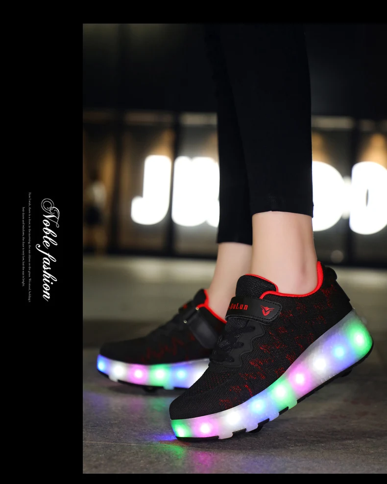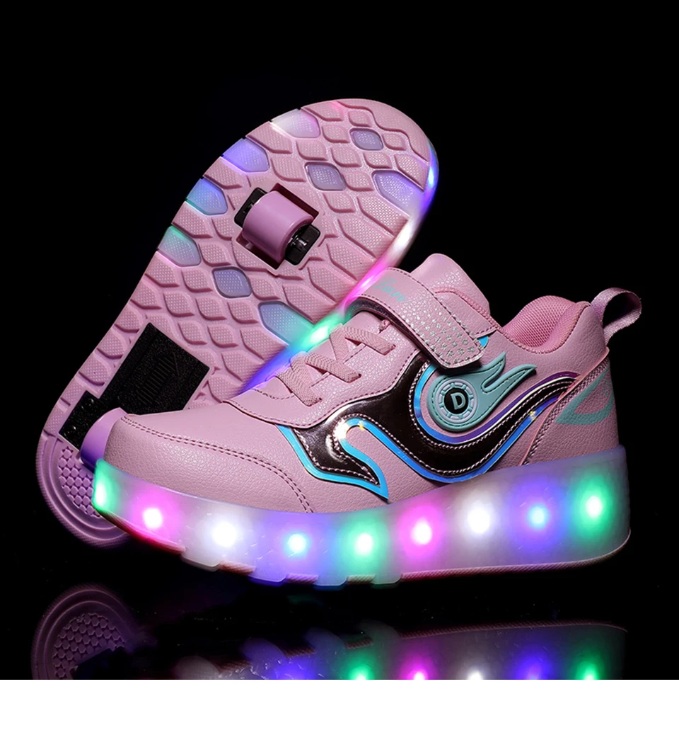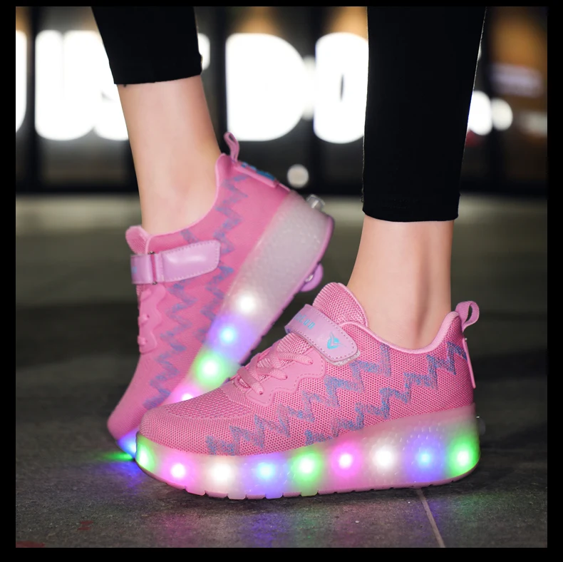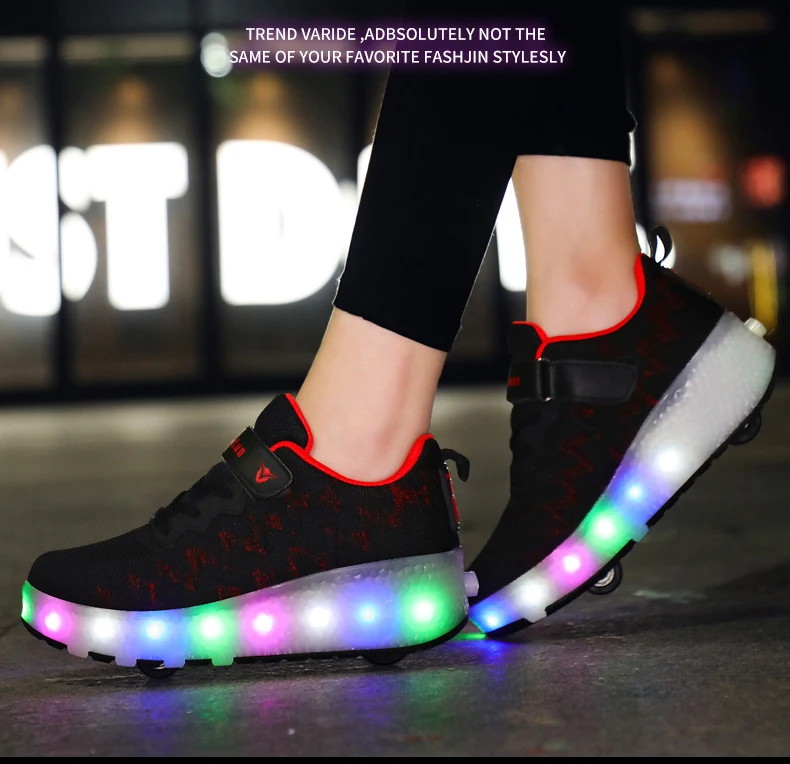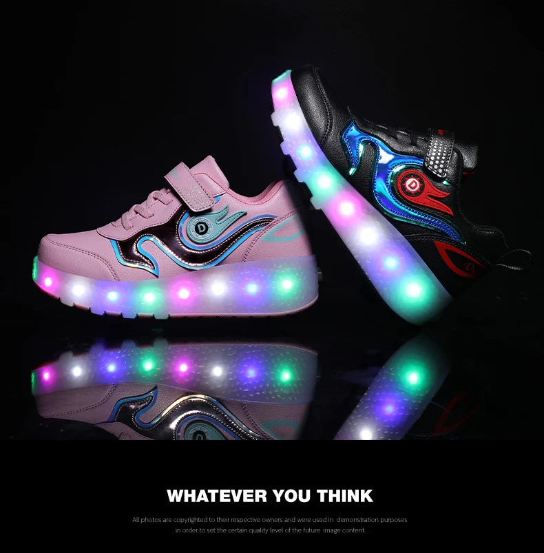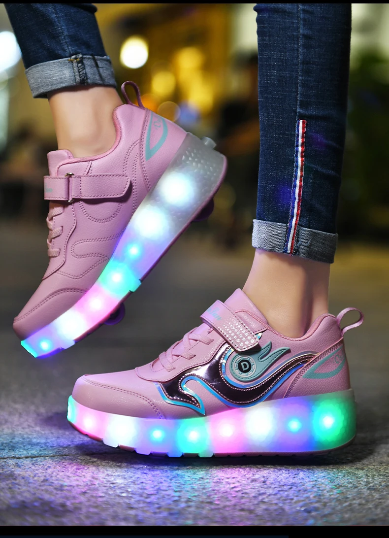 Светящиеся Роликовые кроссовки с двумя колесами, детская обувь для девочек и мальчиков, светодиодная обувь на колесиках, Детская светящаяся