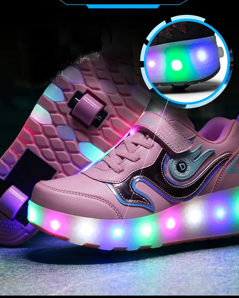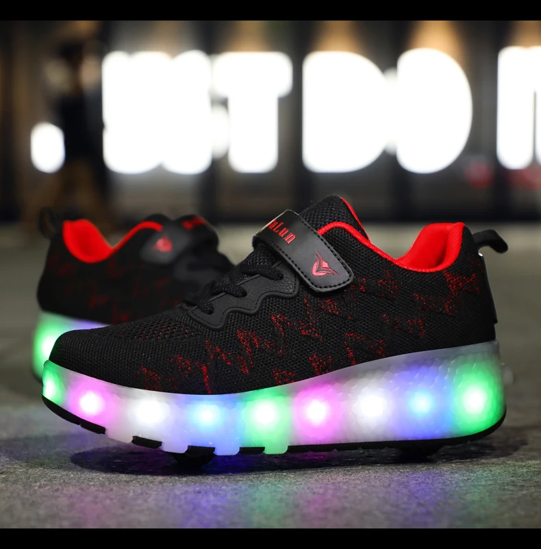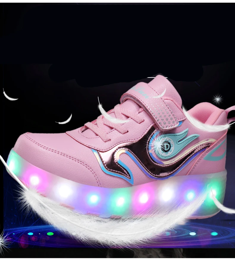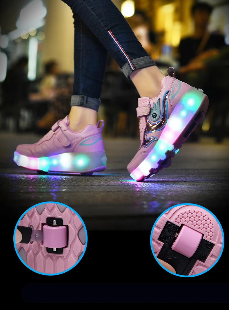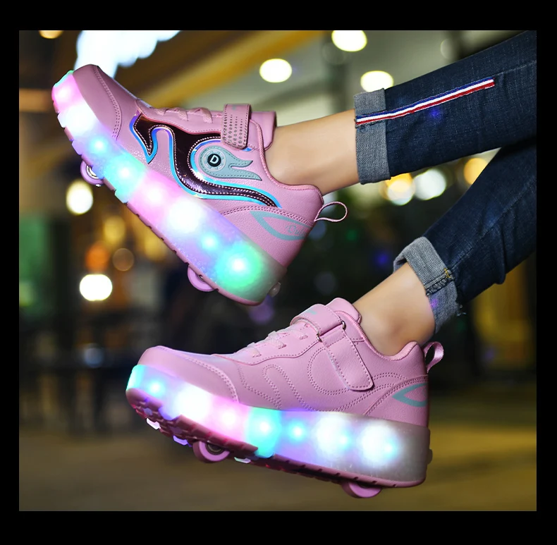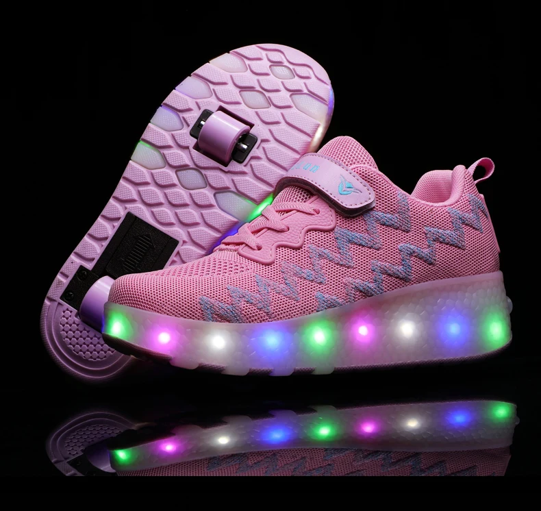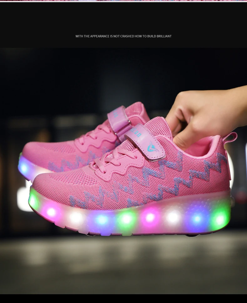 Светящиеся Роликовые кроссовки с двумя колесами, детская обувь для девочек и мальчиков, светодиодная обувь на колесиках, Детская светящаяся
