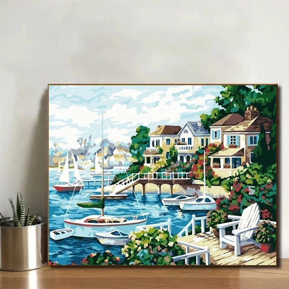 AZQSD Краски Раскраска по номерам холст Краски ing Наборы Приморски...
