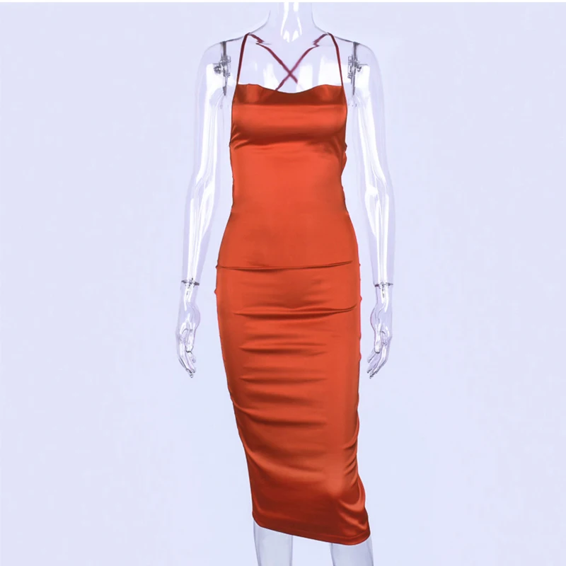 Женское атласное платье без рукавов, неоновое облегающее длинное платье миди с открытой спиной, элегантная вечерняя одежда, пикантная Клубная одежда, лето 2019