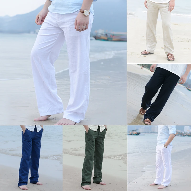 Мужские повседневные длинные брюки из хлопка и льна, однотонные брюки белого, черного цвета, осень-лето, размера плюс, M-3XL