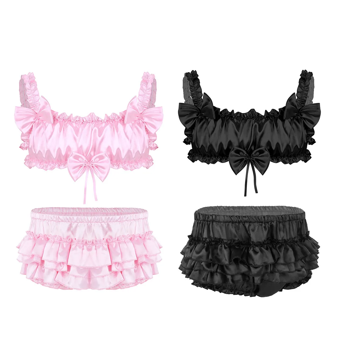 Мужские трусы-шаровары Sissy, комплект нижнего белья с рюшами и рюшами, эластичные Широкие бретельки, бюстгальтер без косточек с бантиком, укороченный топ, шаровары, многоярусные юбки, трусики, одежда для сна