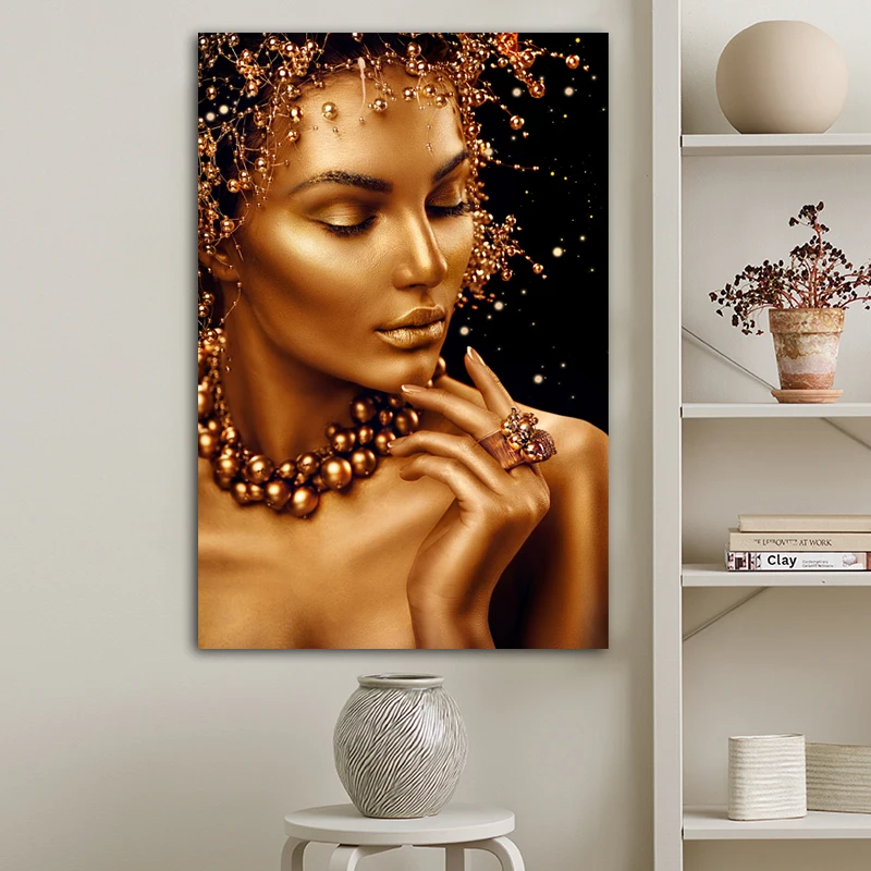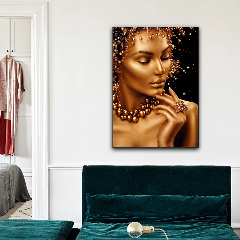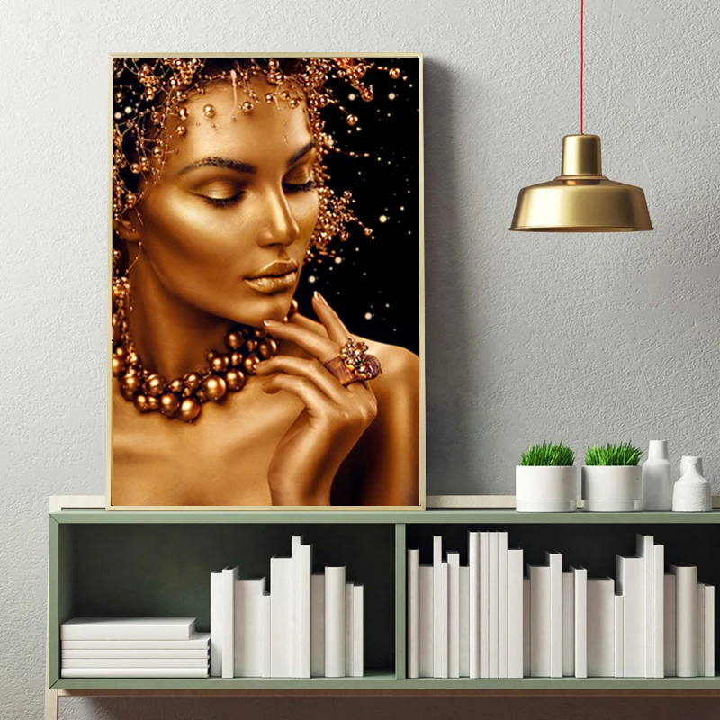 Плакаты CFART, золотисто-черный, африканская женщина холст, постеры для макияжа, красоты, Настенная картина, печатная картина для гостиной