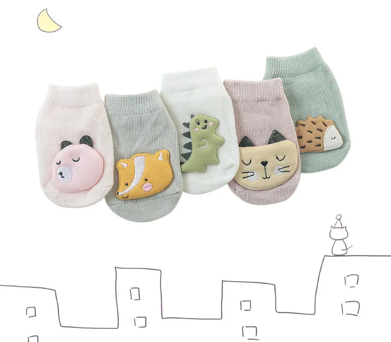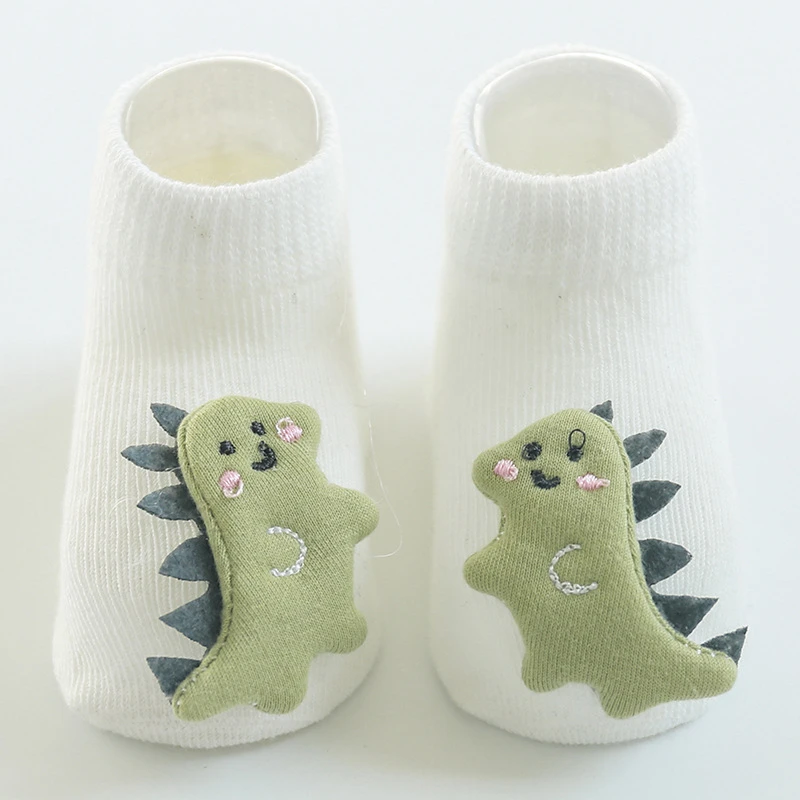 Носки для малышей с изображением кота и динозавра, Нескользящие, хлопковые, 1 пара