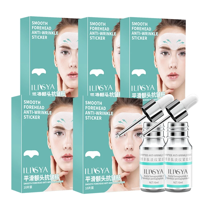 5 коробок против морщин Лоб Патчи и 2 бутылки гиалуроновой кислоты полипептид Сыворотка для лица против старения морщин для удаления