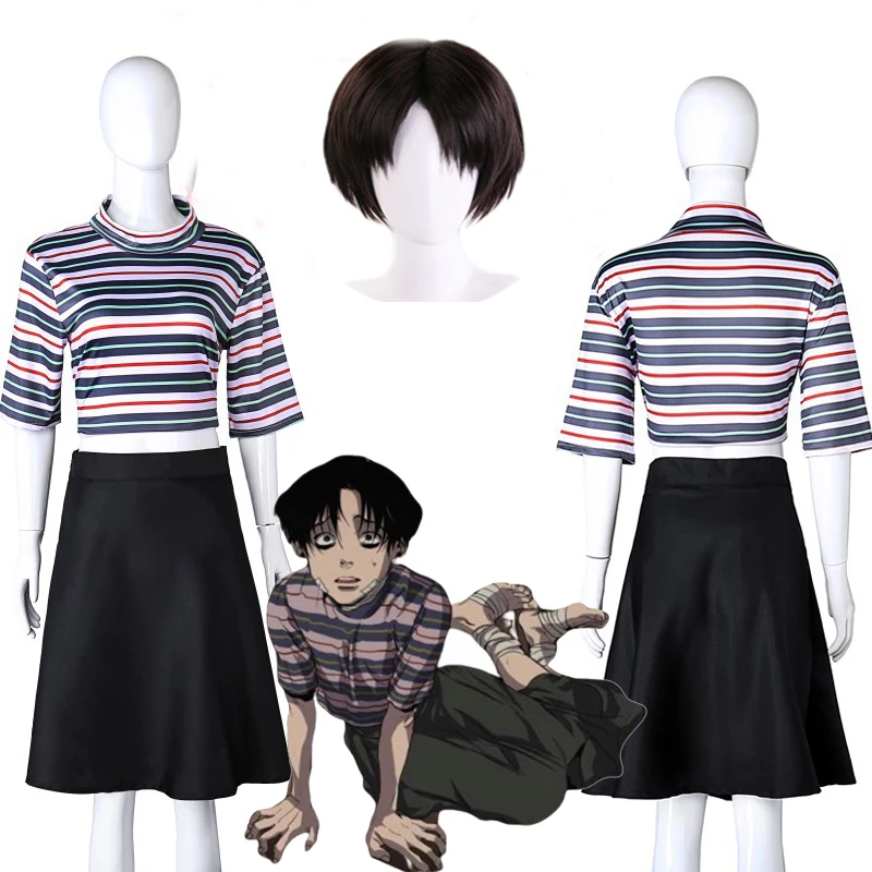 Манга убийства, Yoonbum Юн бум косплей костюм парик для девочек; Повседневная футболка для девочек + юбка на Хэллоуин Карнавальный форма полный набор