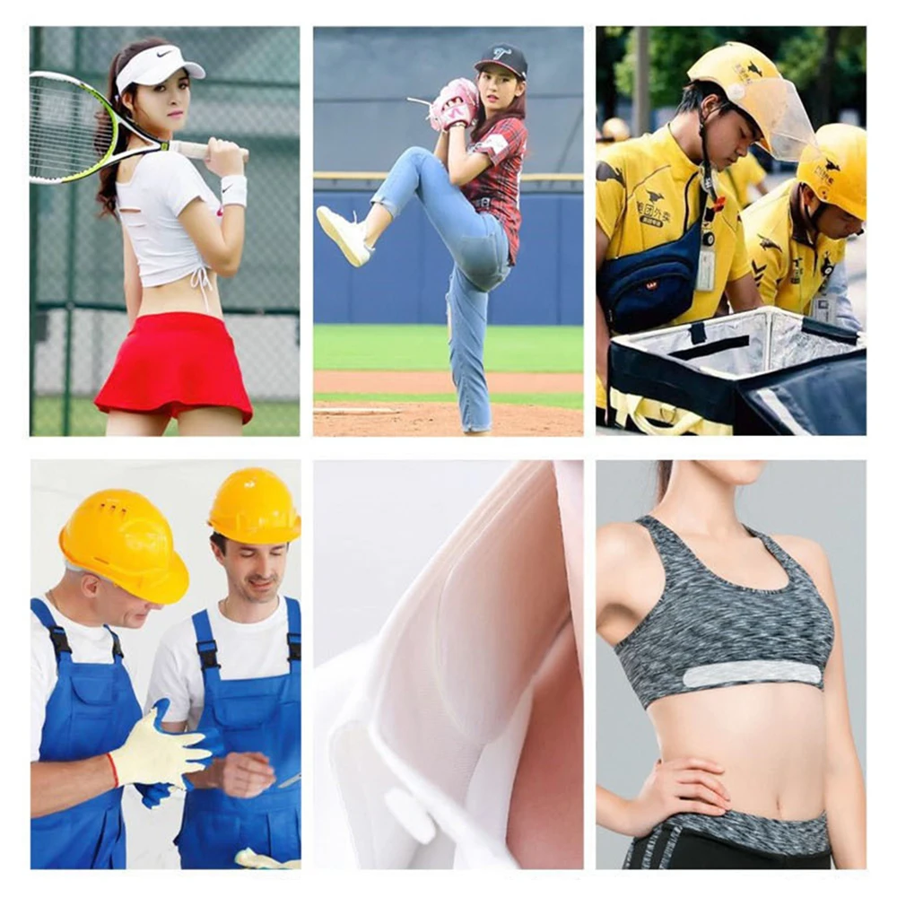 Легко установить: задняя часть каждой ленты является клейкой, позволяет приклеивать их непосредственно к внутренней стороне sweatband, или вы можете сшить их на sweatband, чтобы зафиксировать их прочно
