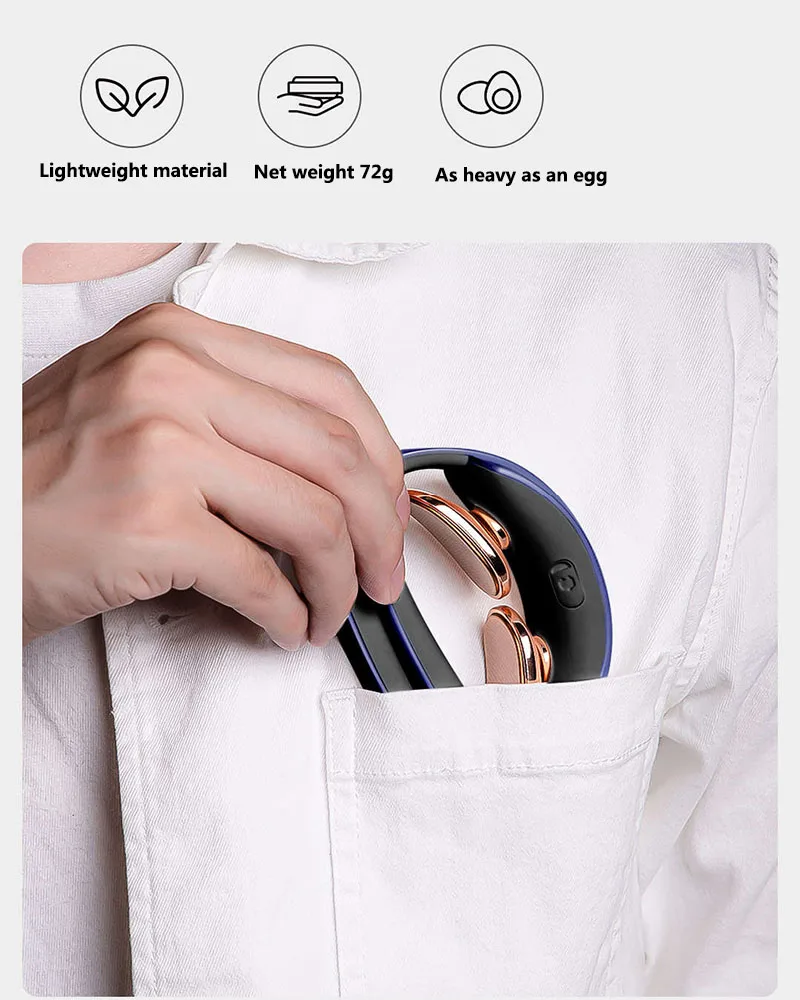 Разработан для комфорта без давления на толстую шею и тонкую шею в соответствии с принципом эргономики, защита рук с обеих сторон дополнительно оптимизирована, А обтекаемая гладкая пластина импульсного электрода гальванизирована для создания прилегания к шее. Нижние стороны крыльев изготовлены из силиконового материала, который удобно размещать в шее, не давит на шею