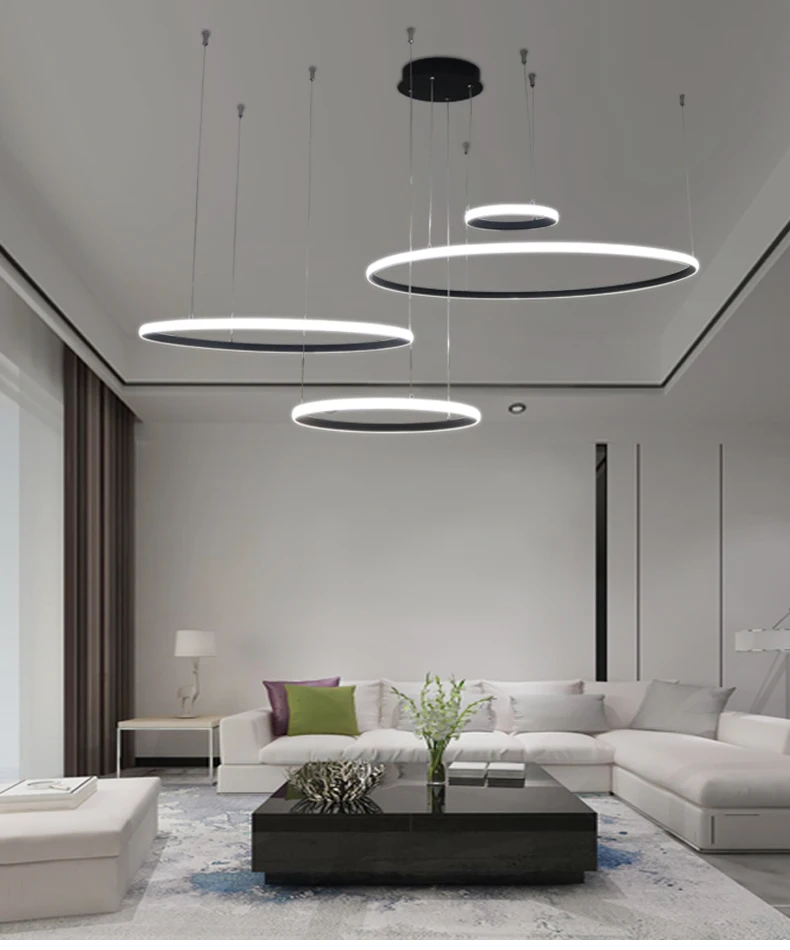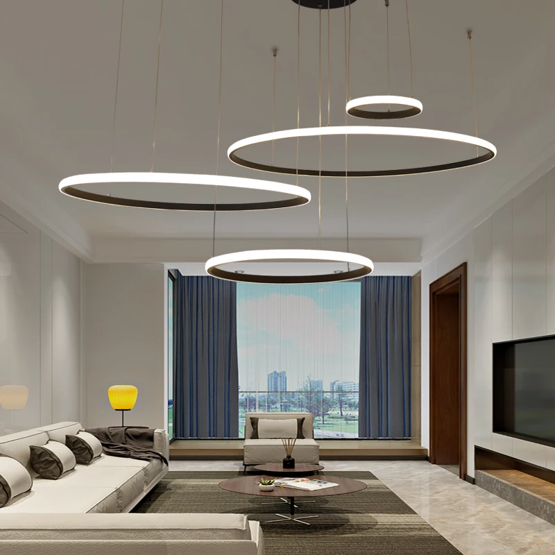 Круглый светодиодный подвесной светильник с кольцами, светильник для внутреннего освещения, современный подвесной светильник s для гостиной, столовой, кухни, светодиодный подвесной светильник