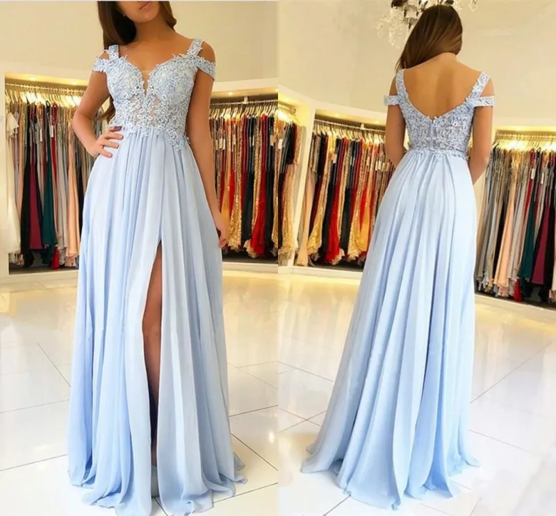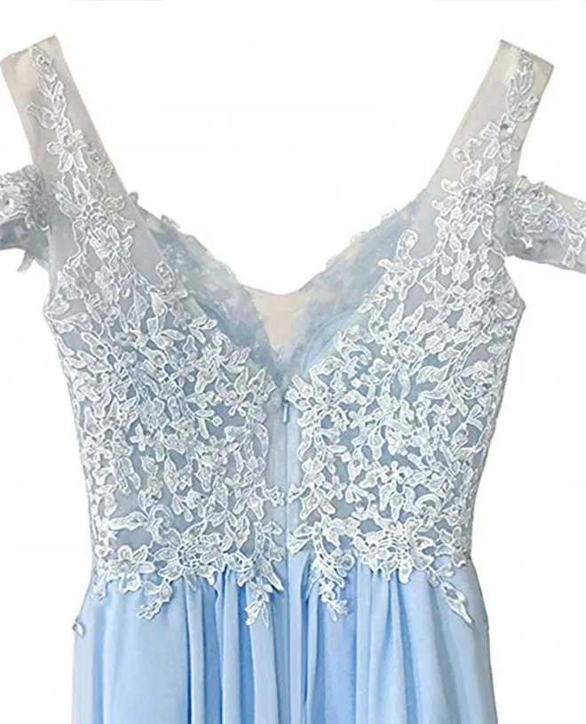 Женское вечернее платье с открытыми плечами, длинное платье небесно-голубого цвета с разрезом сбоку и кружевной аппликацией, платье для выпускного вечера и вечеривечерние, платье горничной Honor для гостей свадьбы