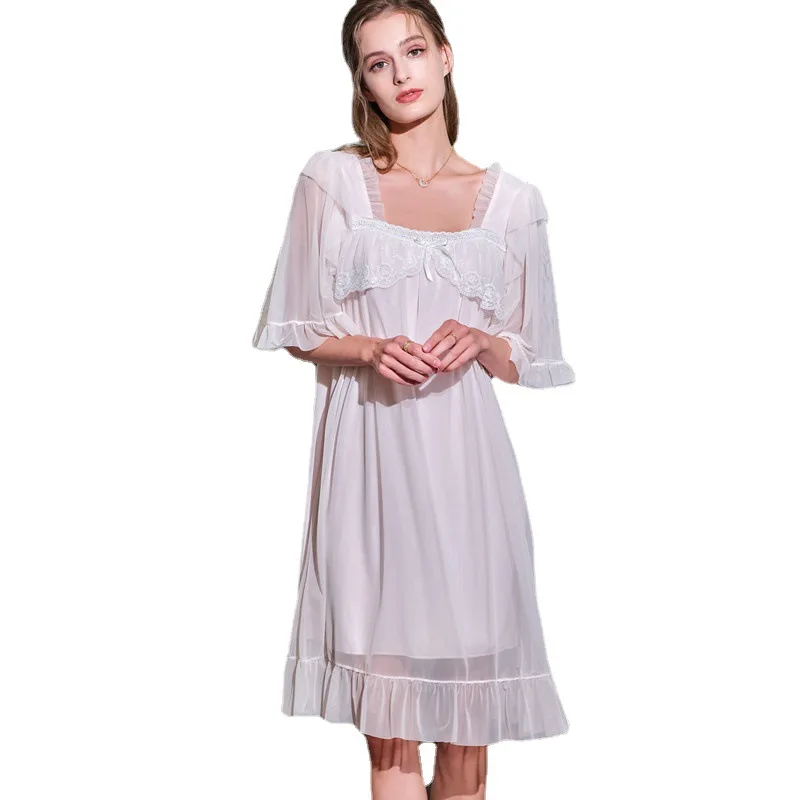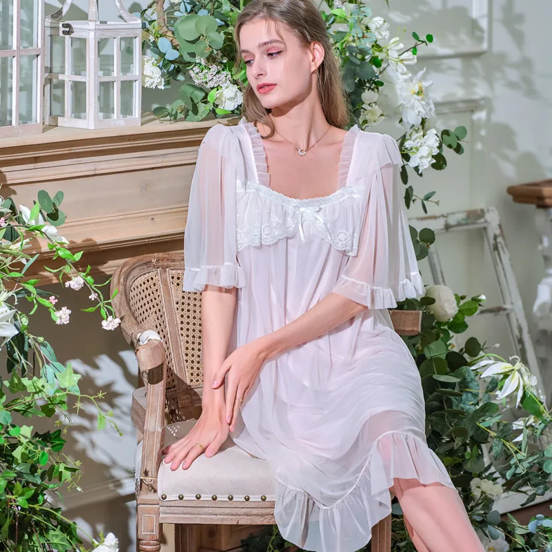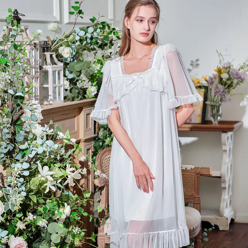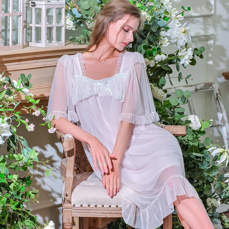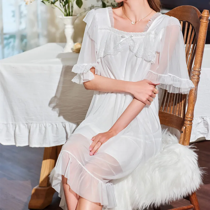 Осенние женские длинные ночные рубашки с коротким рукавом, кружевная Нежная кружевная отделка, кружевная тонкая винтажная одежда для сна принцессы из модала