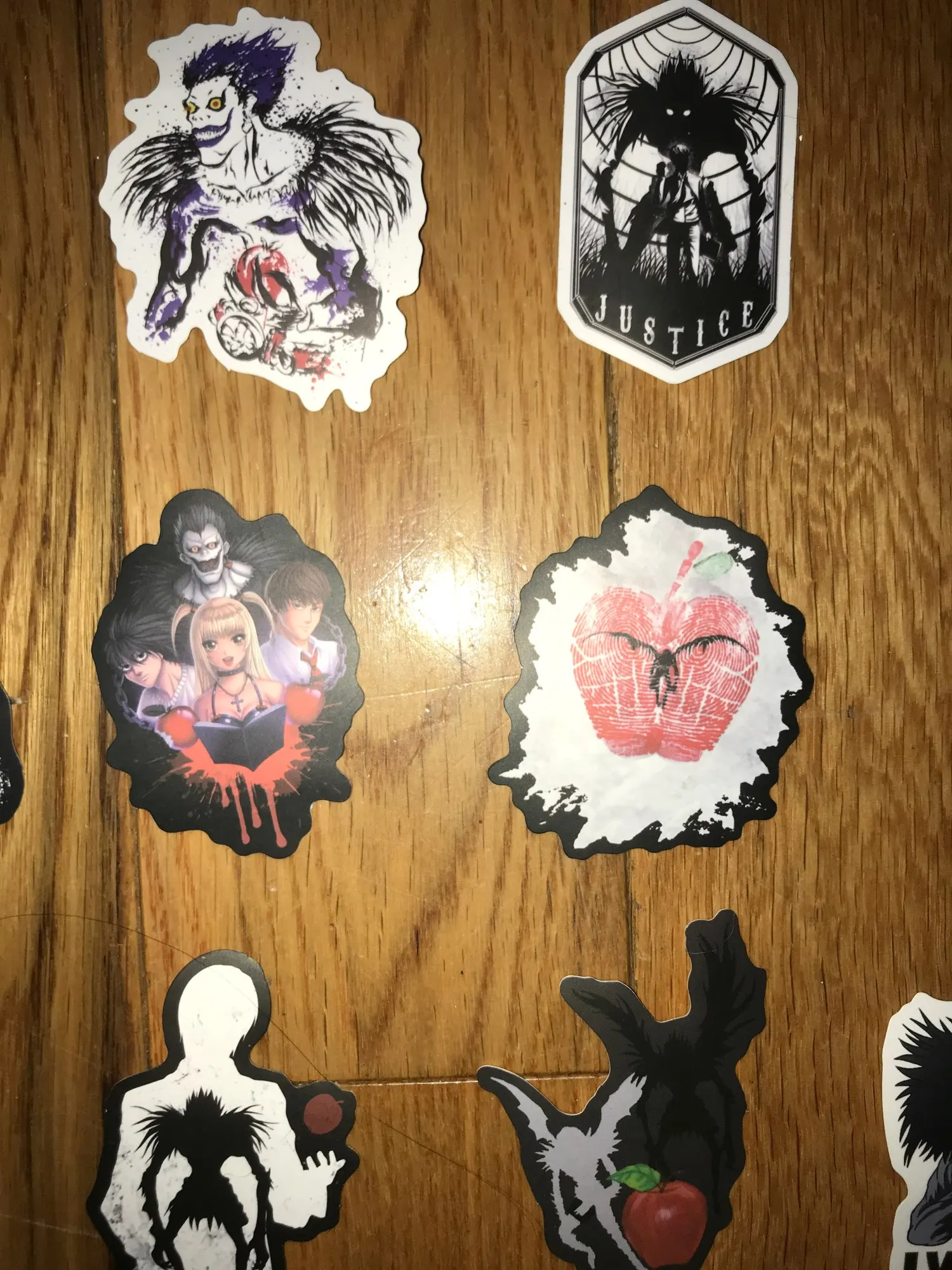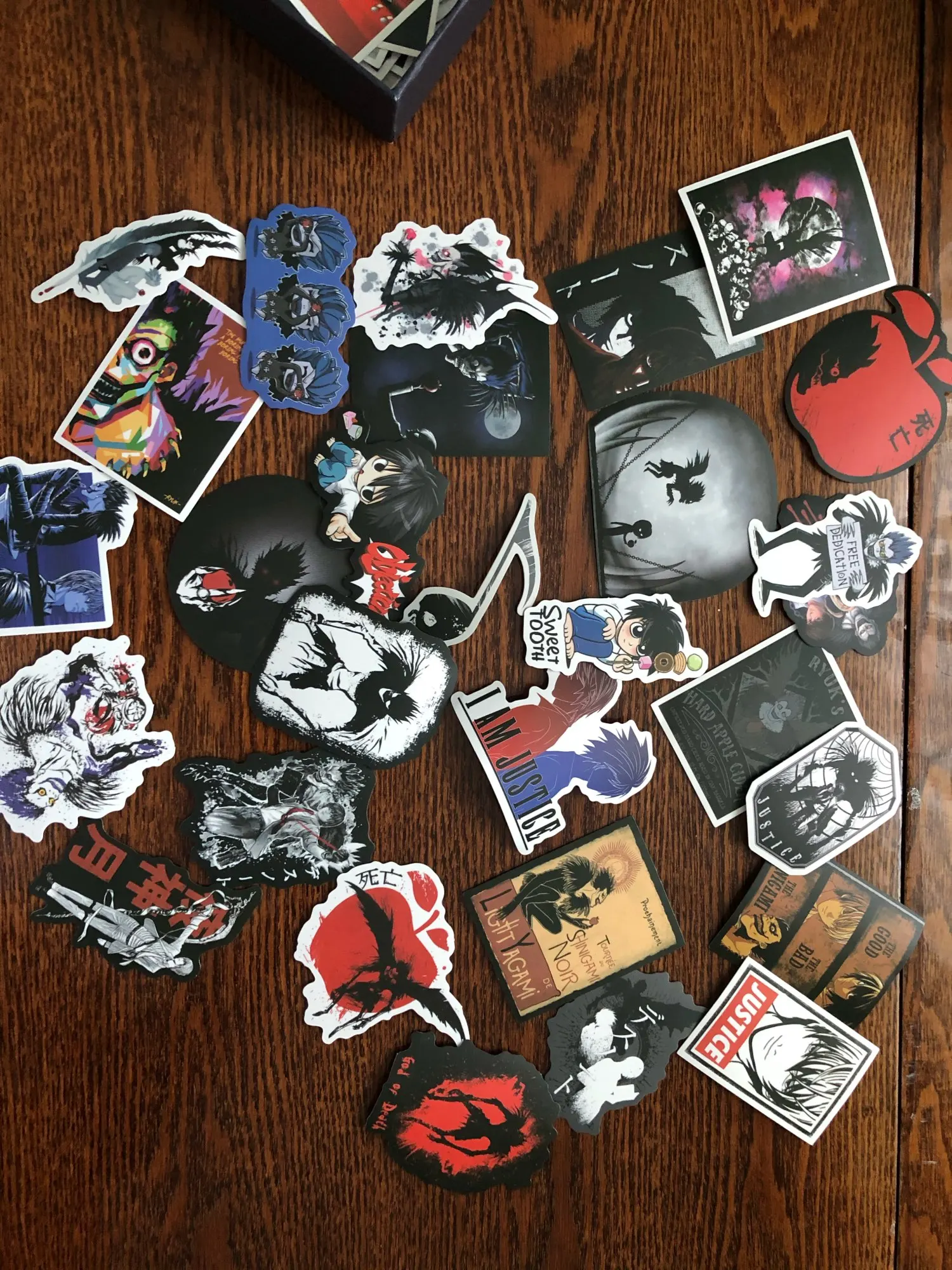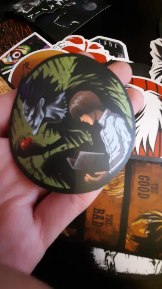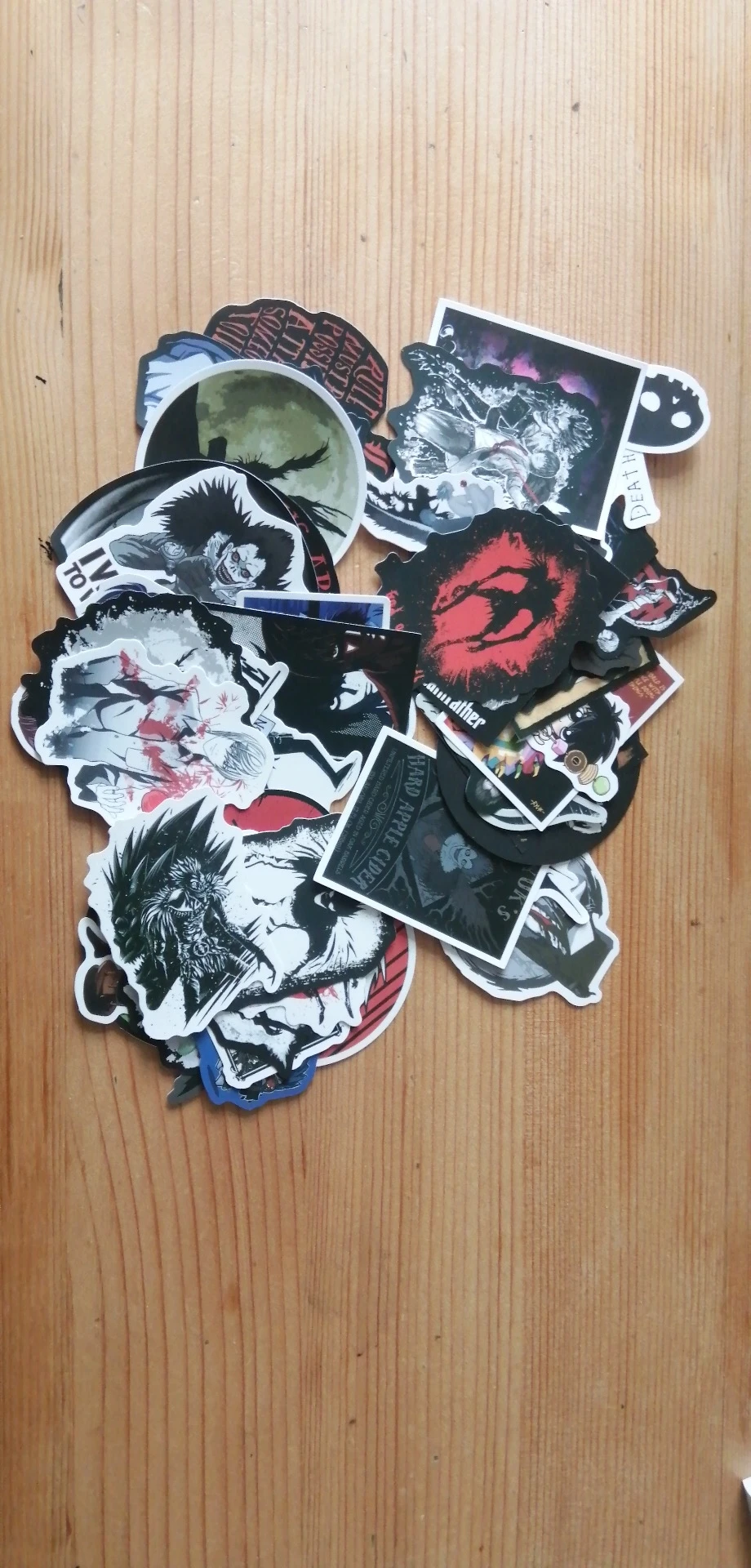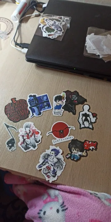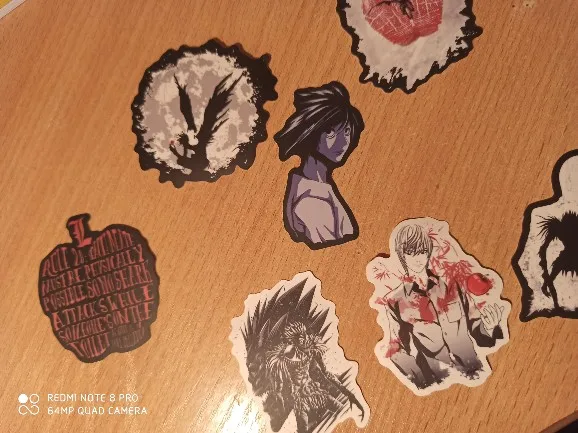 Наклейки очень классные, пришло ровно 10. Качественные, придраться не к чему, попалось много наклеек с Рюком, но меня это даже радует.