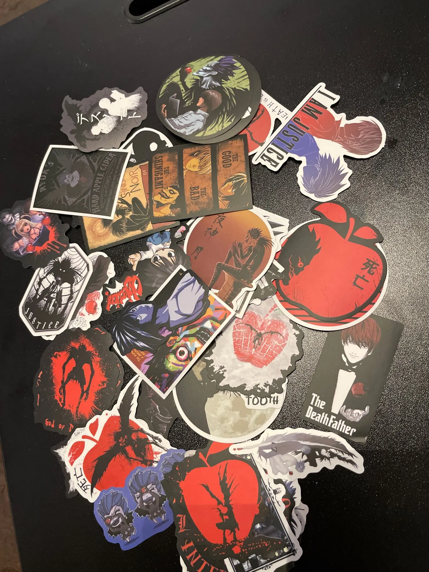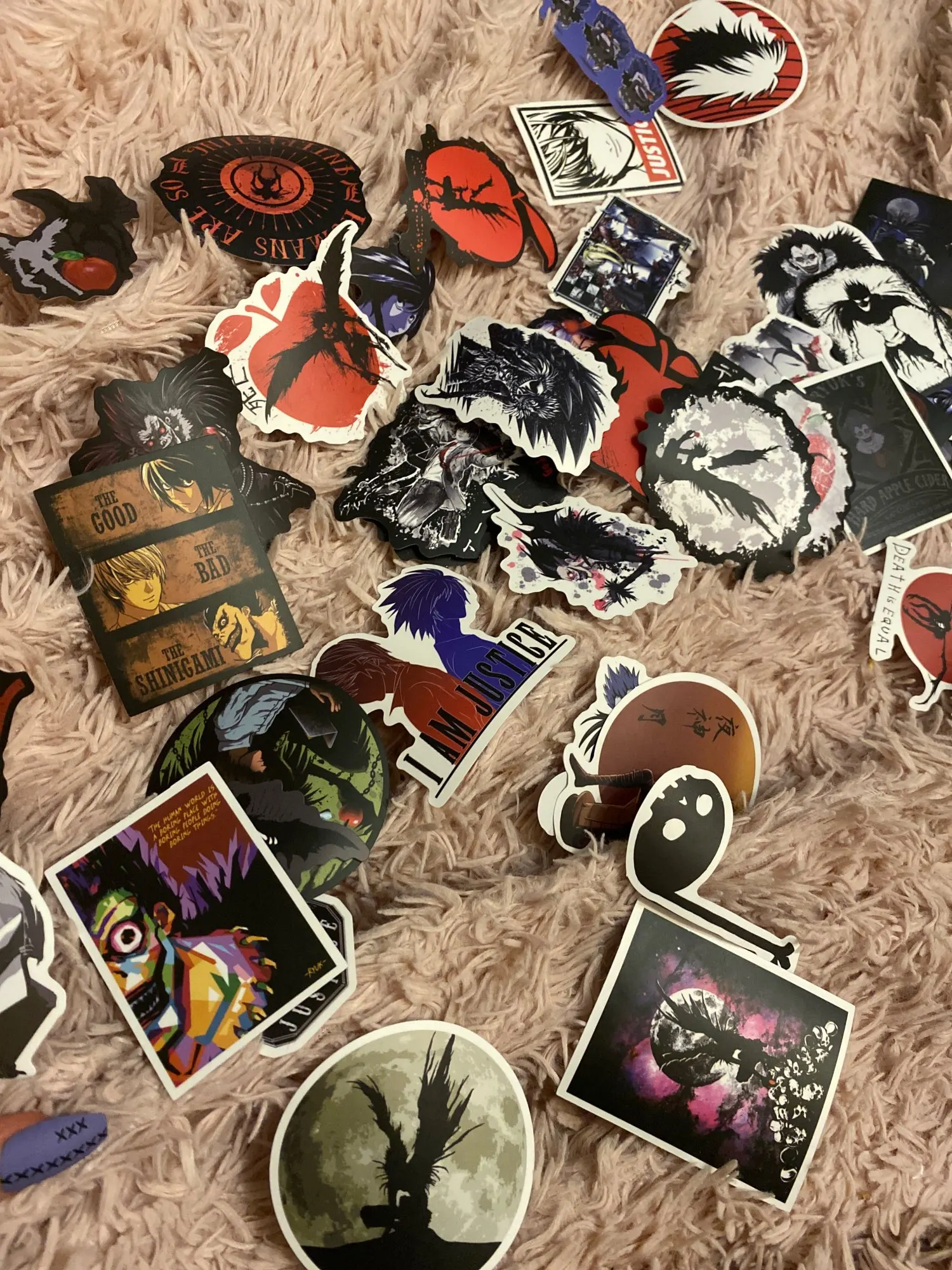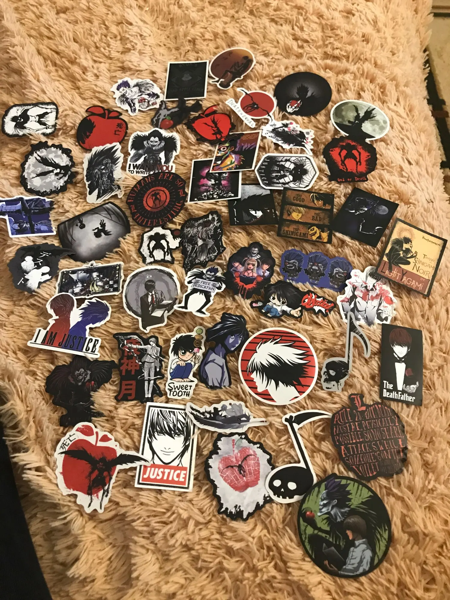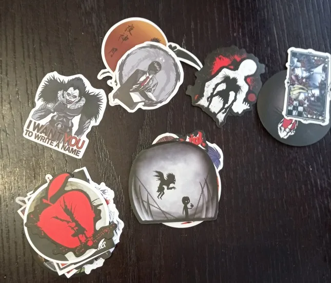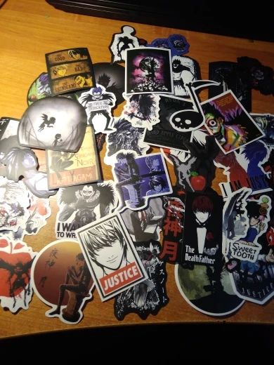 наклейки супер. Сами они матовые, большинство наклеек с Рюком. Заказывала 50 штук.