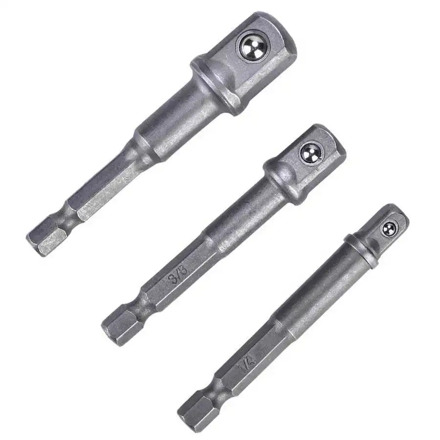 3 шт., серебристый адаптер с шестигранным хвостовиком 14 дюйма на сверло 14, 38, 12 дюйма с квадратной головкой