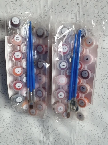 Bardzo ciekawie to wygląda. Nie mogę się doczekać kiedy zacznę. Wszystko jak na aukcji, dużo kolorów ponad 20 i pędzelki w zestawie. Jak zrobię wystawie dodatkową opinie.