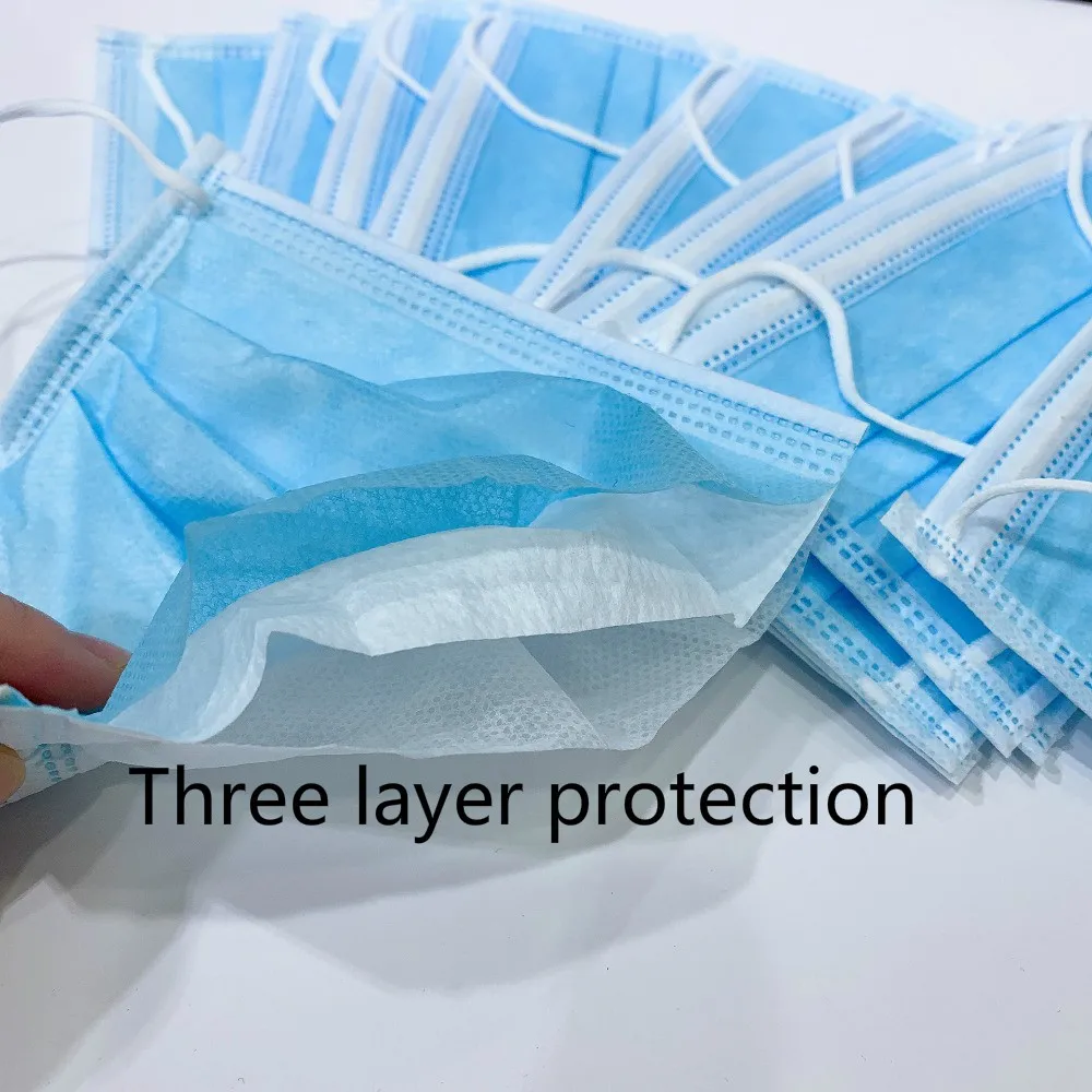 Маски для лица одноразовые синие с 3-слойным фильтром, 10-600 шт.