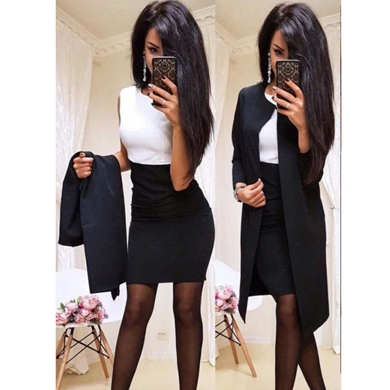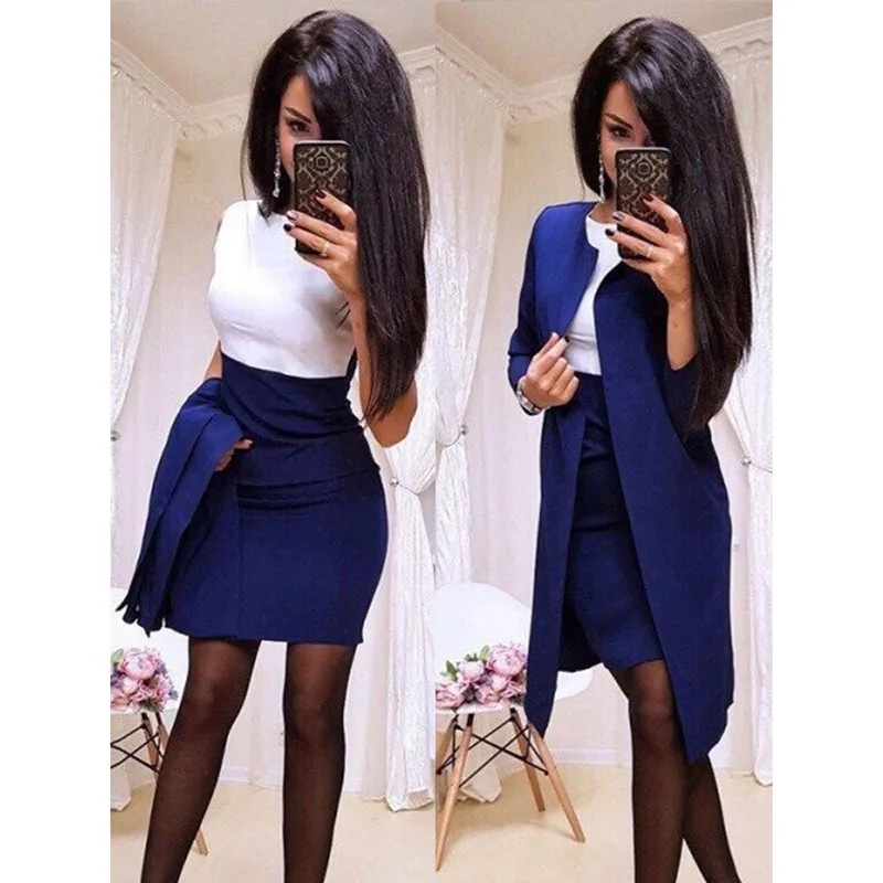 Женский комплект из двух предметов, платье-футляр мини с круглым вырезом, сексуальное официальное платье-блейзер для офиса