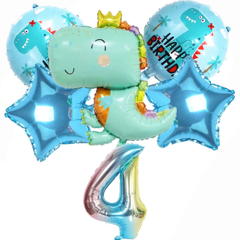 1 шт. динозавр 90x69 см2 шт. 18-дюймовая синяя пятиконечная звезда2шт 18-дюймовый шар динозавра1 шт. 32 дюйма цифры