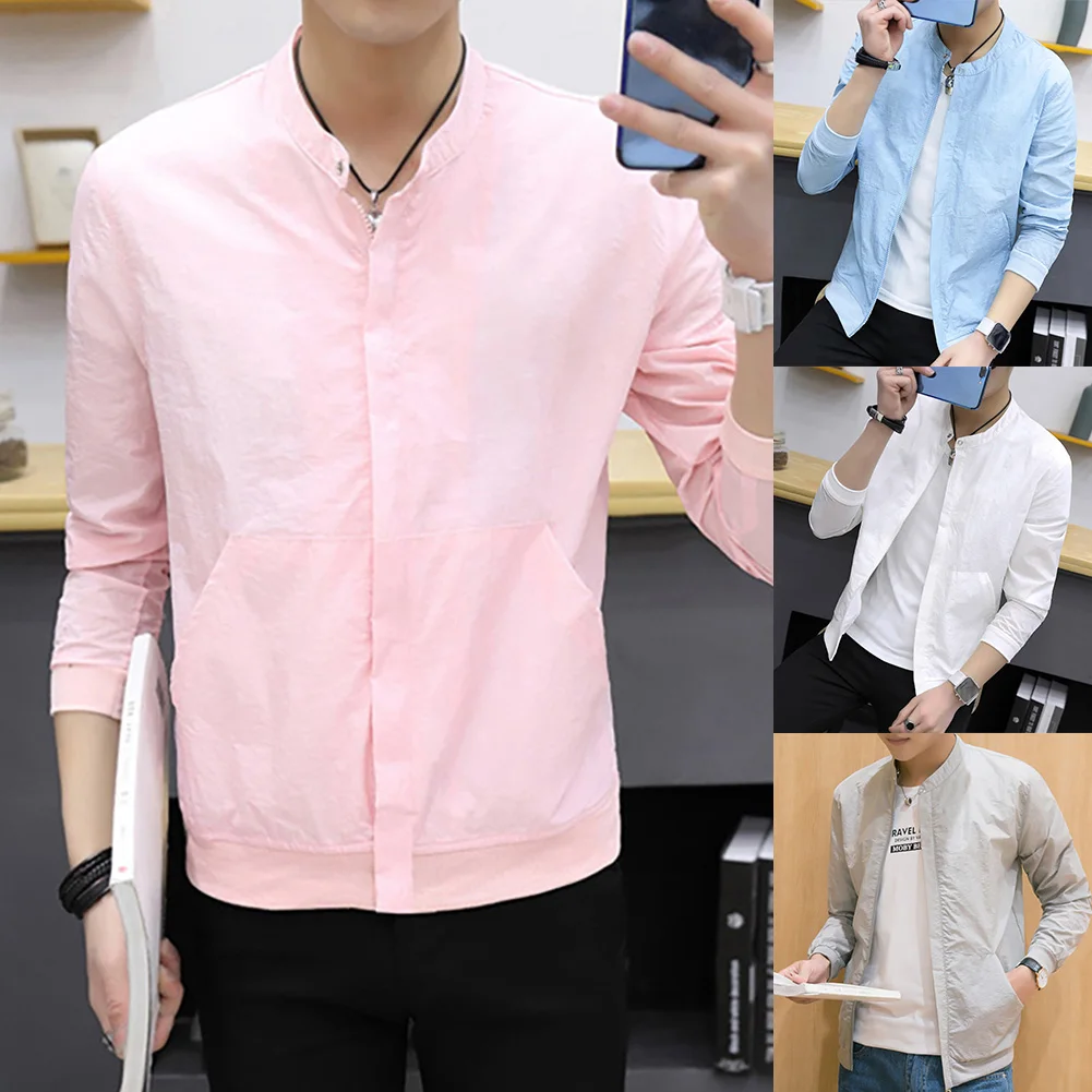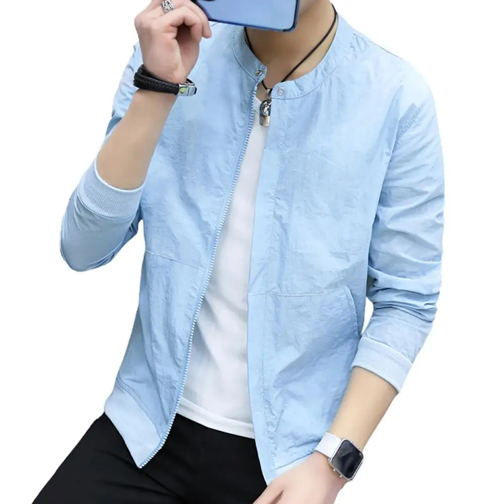 Куртка мужская с длинным рукавом, на молнии, с карманами, ультратонкая дышащая, защита от солнца