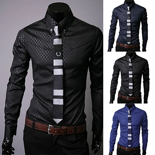 Модная мужская рубашка в деловом стиле с длинным рукавом