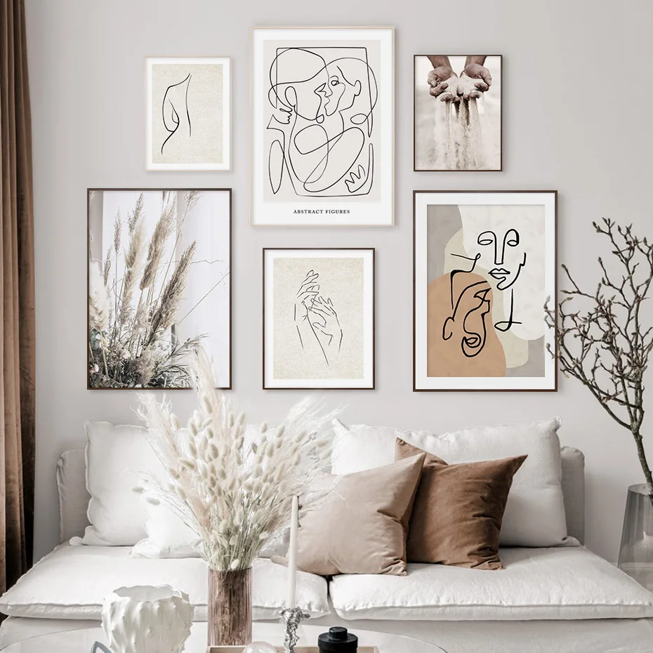 Эскиз фигуры в стиле бохо, модная Абстрактная Картина на холсте, настенное художественное оформление для гостиной, украшение для дома без рамки, бежевый цвет