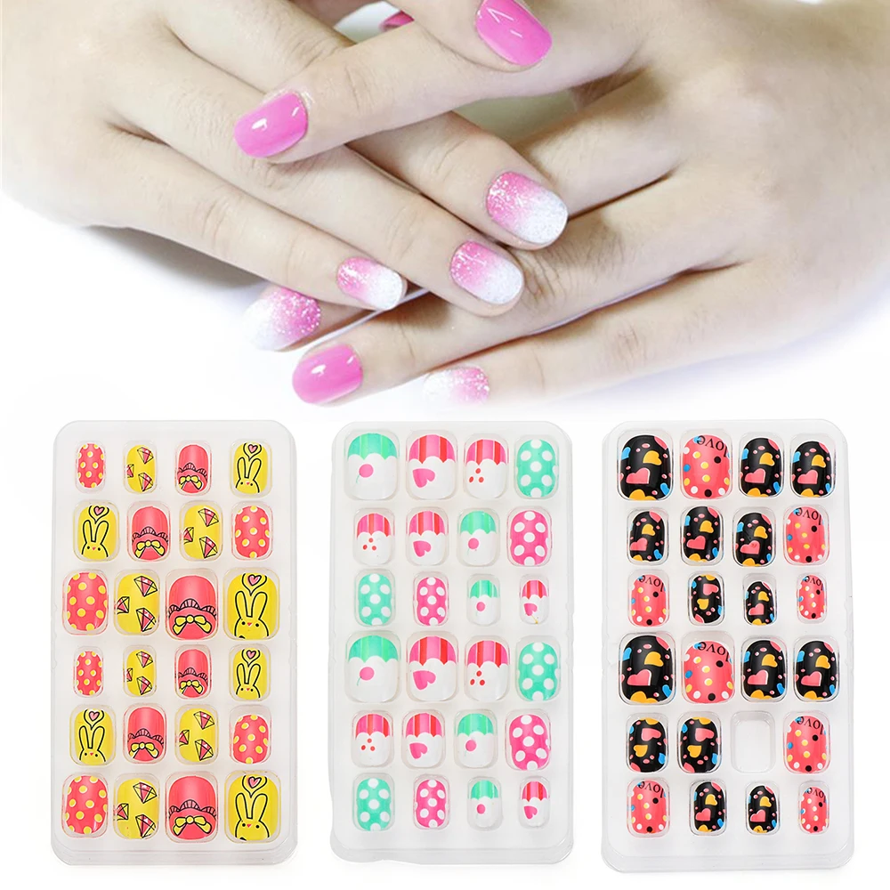 Накладные ногти, 24 шт.лот, для детей, мультяшный клей, самоклеящий...
