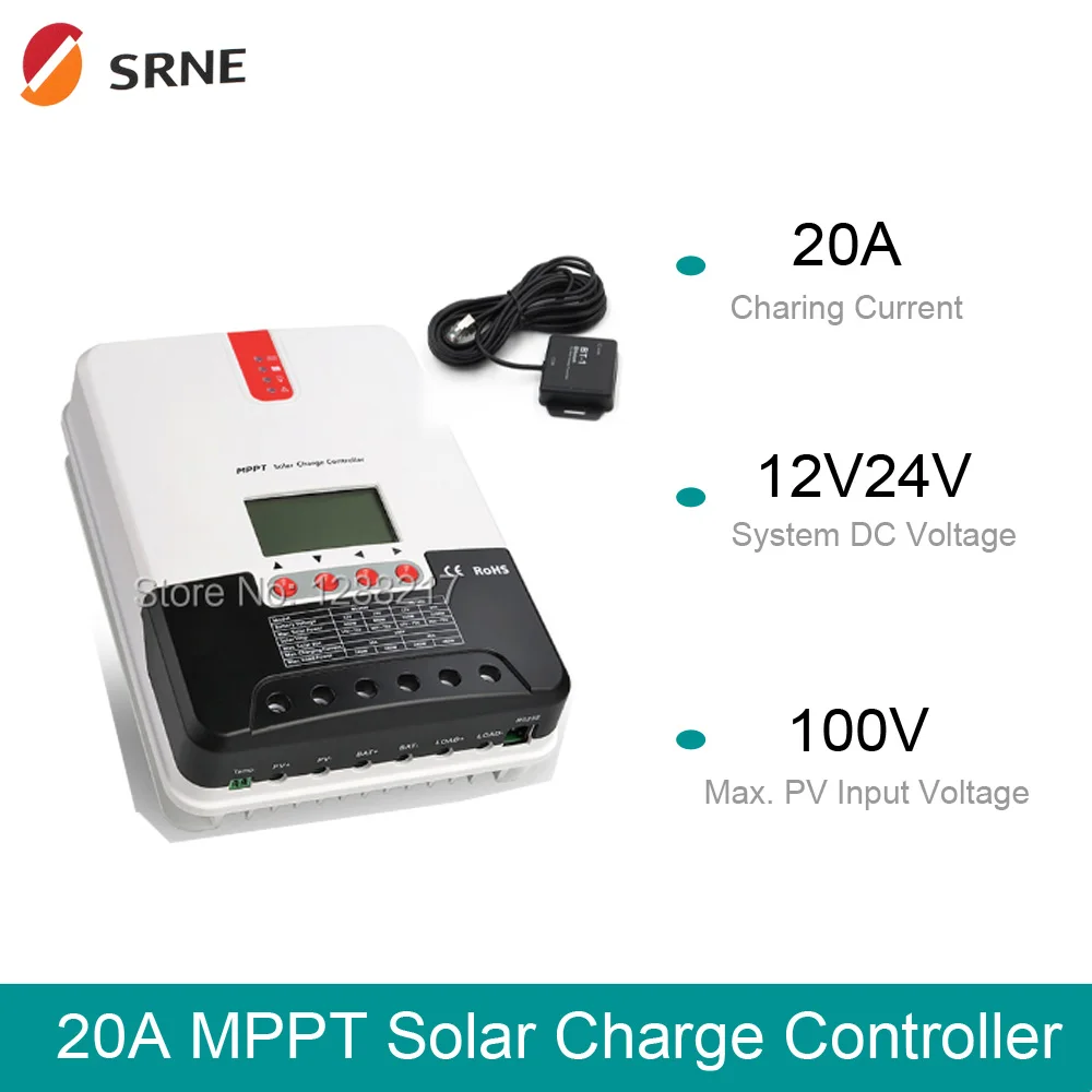Автоматический контроллер заряда солнечной батареи MPPT для регулятора литиевых батарей с фотоэлементом или дистанционным измерителем, 20 А, 12 В, 24 В