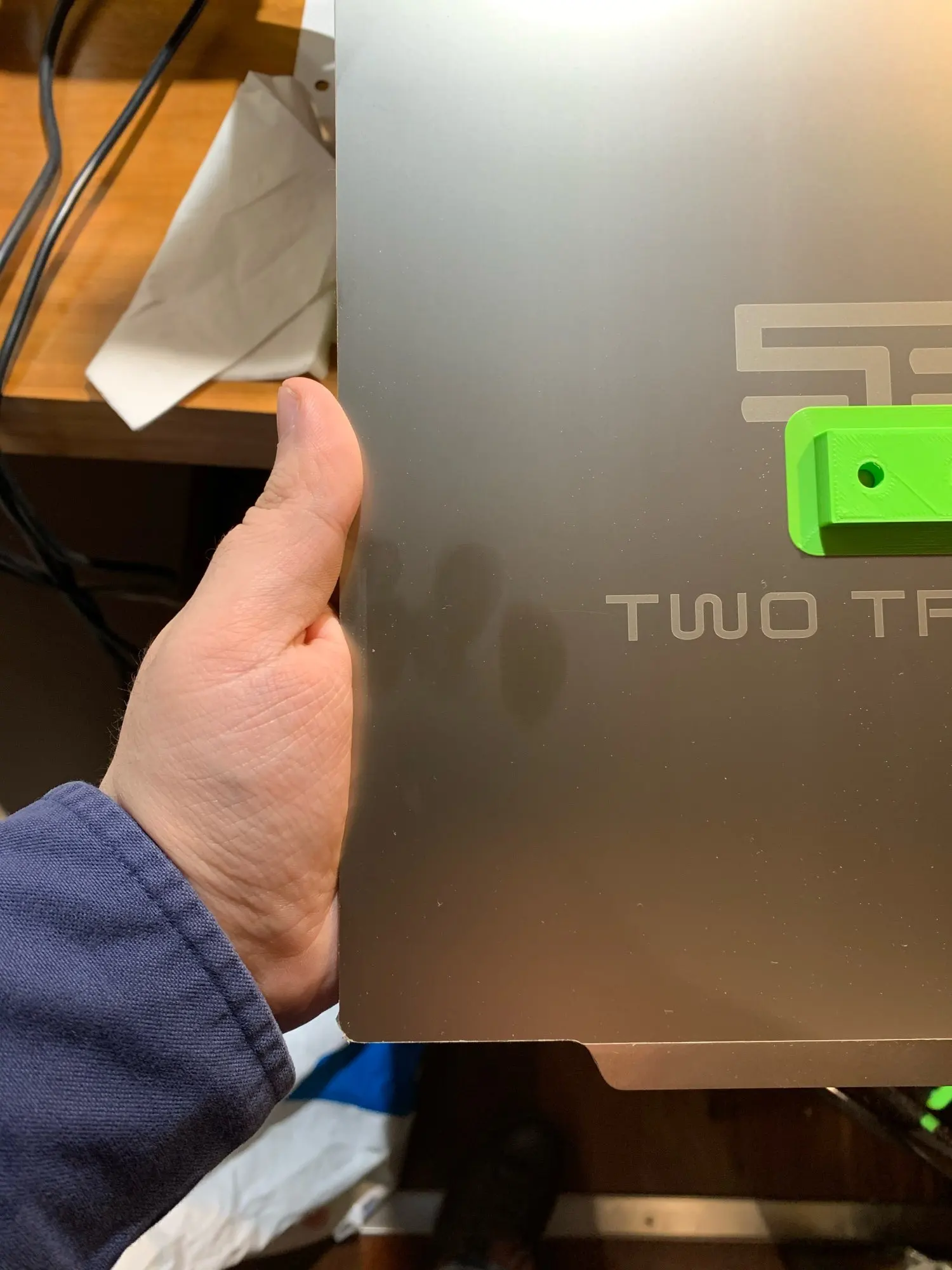 Продукт показался качественным, но на первом, который был напечатан, был отмечен по всей краю пластины вокруг части материала pla температура 200 ° c и кровать 25 ° c, как будто пластина краска поднимается нагревом