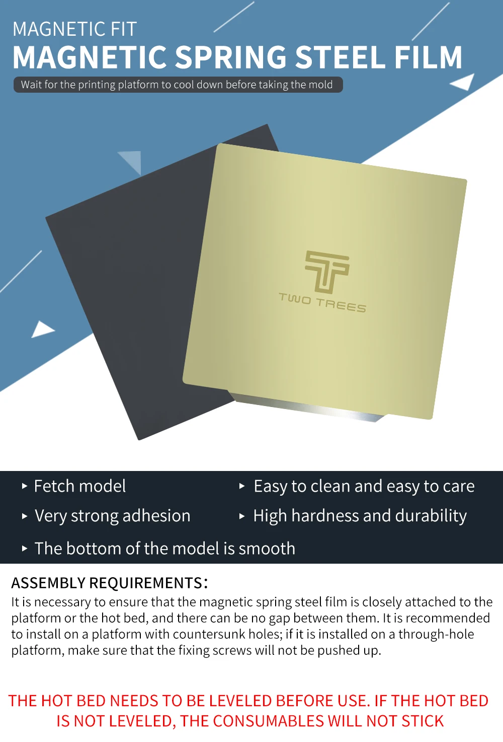 Хороший продукт, работает как ожидалось, очень хорошо прилипает к кровати, и магнитная часть имеет достаточно силы, даже при температуре 100 °C.