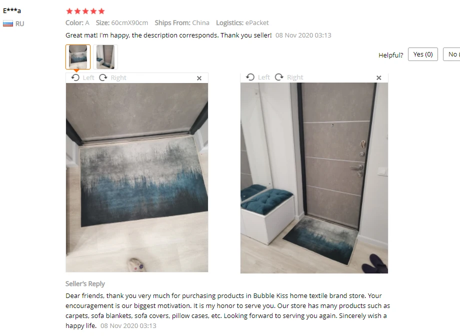 В: это противоскользящее изделие?О: Да, нижняя часть ковра-Нескользящая пластиковая подошва.Вопрос: Что делать, если вы хотите большой ковер?О: пожалуйста, свяжитесь с нашей службой поддержки клиентов напрямую.В: если мне это не нравится, как вернуть товар?О: мы вернем покупателям деньги, если покупатели возвращают товары в течение 15 дней с момента получения покупателями товаров по любой причине. Тем не менее, покупатели должны нести стоимость обратной доставки и убедиться, что возвращенные товары находятся в их первоначальном состоянии.В: какая логистика используется для доставки?О: товары отправляются стандартной доставкой AliExpress, авиапочтой Китая, Премиум доставкой AliExpress, ePacket, доставляются в большинство стран в течение 15-35 рабочих дней. Время доставки зависит от пункта назначения и других факторов, это может занять до 60 рабочих дней.Если вы хотите получить товар быстрее, пожалуйста, свяжитесь с нами, чтобы оплатить дополнительные перевозки, мы можем предложить вам следующие более быстрые и дешевые способы доставки: UPS , DHL , Fedex , TNT , DEPX , EMS. С помощью этих способов вы можете получить товар в течение 5-7 рабочих дней.