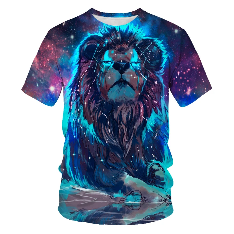 Новинка 2021, футболка в 3D стиле с рисунком льва, мужская летняя 3...