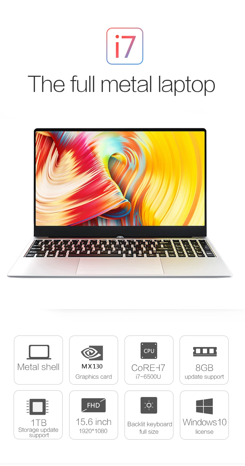 Ноутбук MX130 2G с диагональю 15,6 дюйма, с Corei7 6500U, 16 ГБ, DDR4, 1 ТБ SSD, с подключением клавиатуры, Bluetooth, нетбук, бесплатная доставка