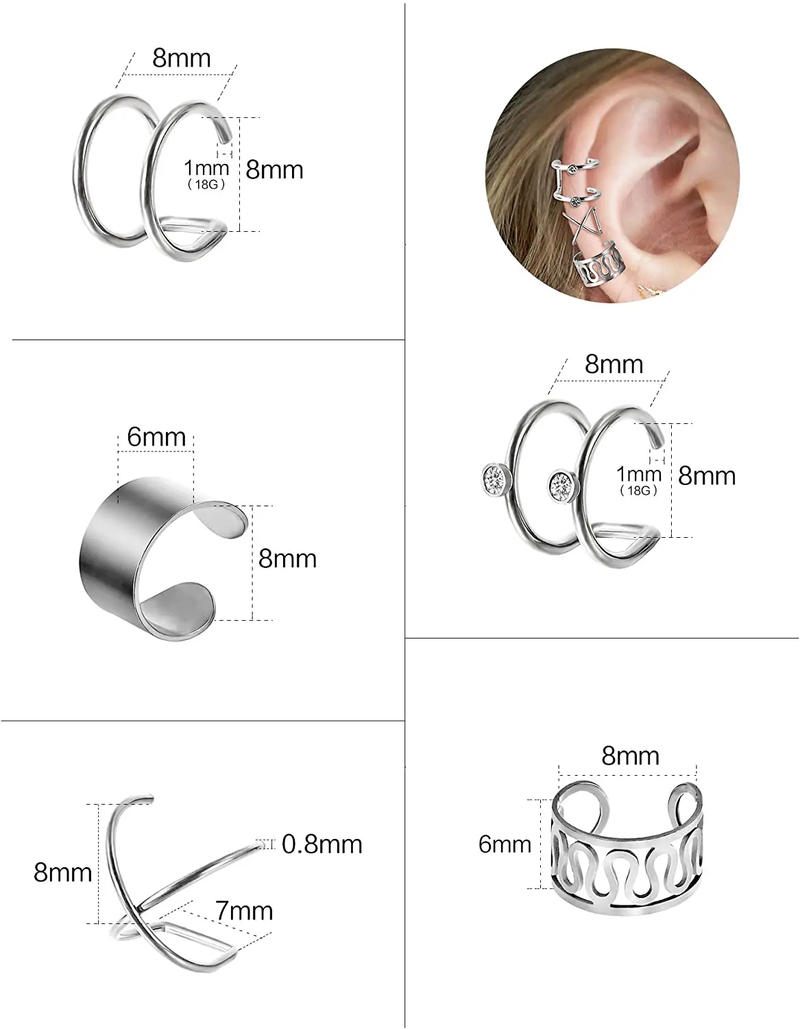 Клипсы для ушей из нержавеющей стали, манжеты для ушей, спиральный для хряща, клипсы для сережек, не пирсинга хрящей, серьги для женщин, принадлежности для девочек