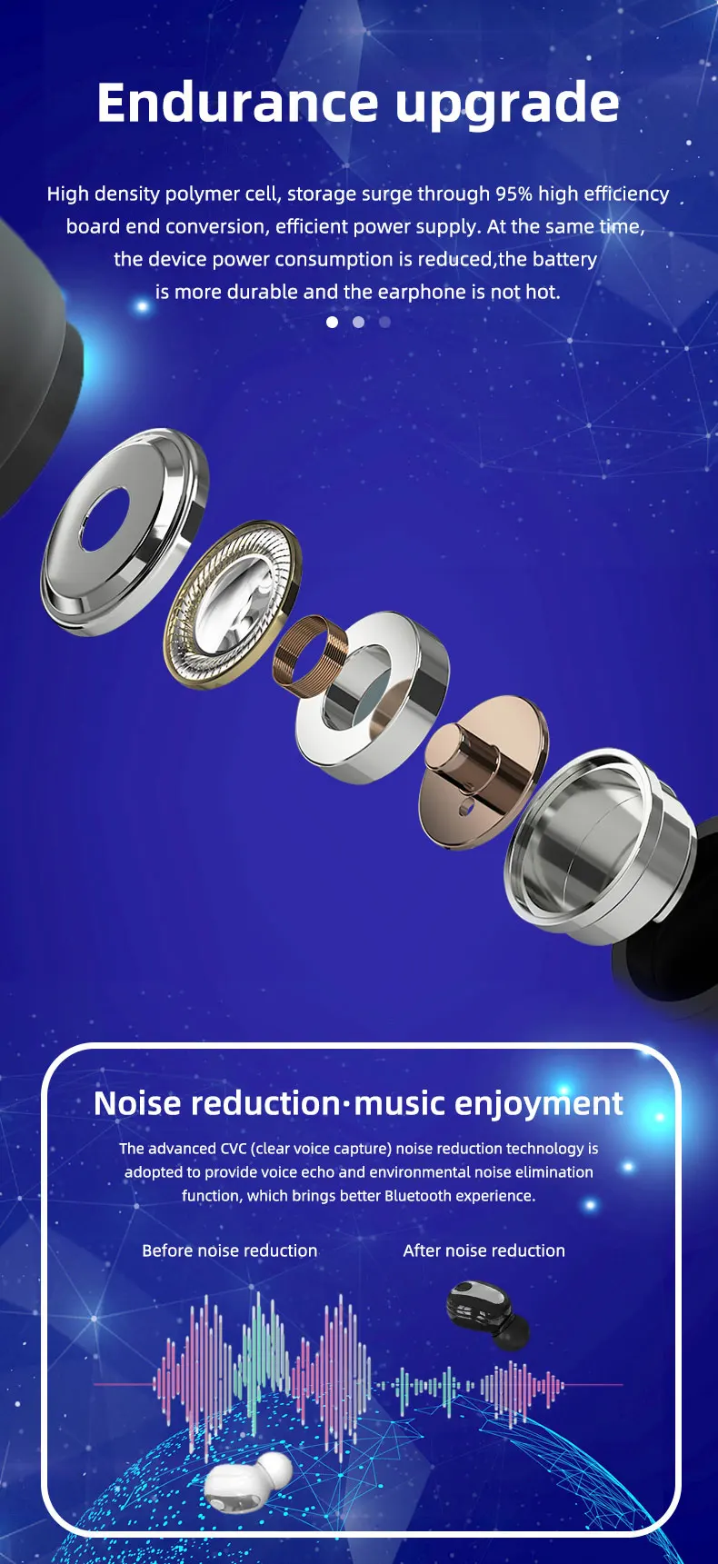 Беспроводные мини-наушники, Bluetooth наушники S9, гарнитура с шумо...