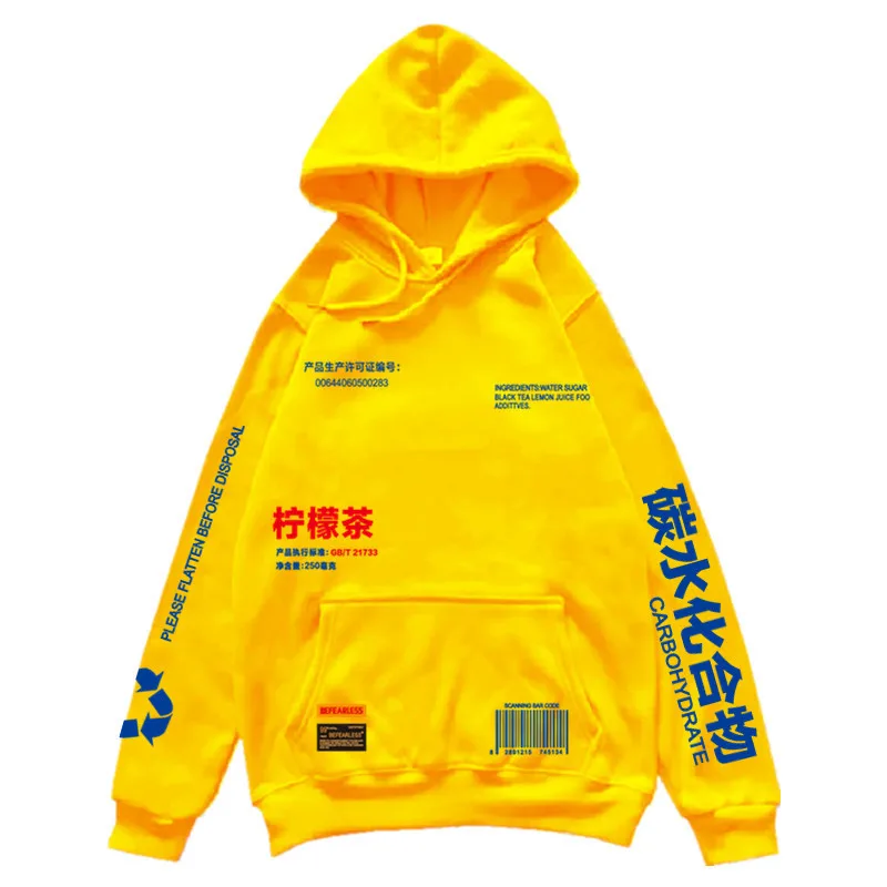 Свитшот мужскойженский флисовый с капюшоном и принтом лимона и чая