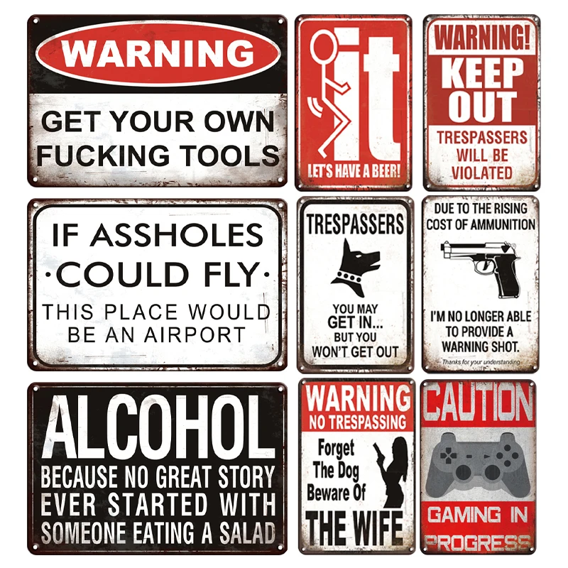 Ретро Модный шикарный Забавный металлический жестяной знак предупре...