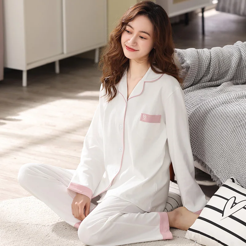 Пижама женская из 100% хлопка, с длинным рукавом, на пуговицах