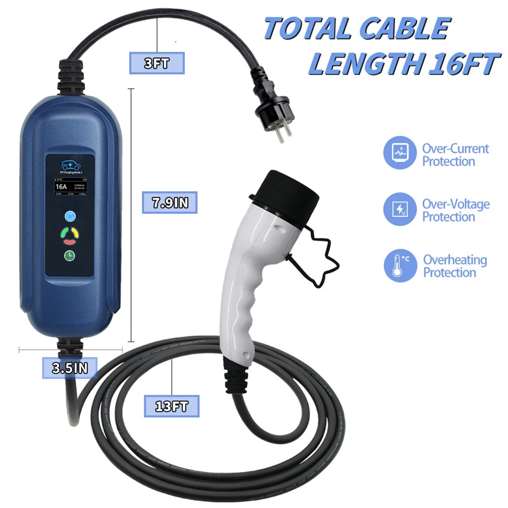 16А ЕС стандартный регулируемый портативный EV зарядное устройство