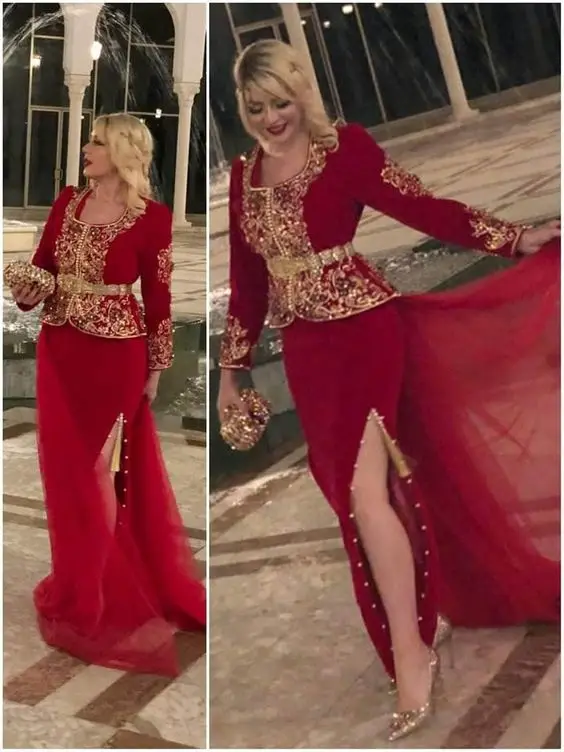 Красные официальные платья с длинным рукавом для выпускного вечера с нарукавником 2021 блестящие золотистые кружевные платья с разрезом из искусственной кожи