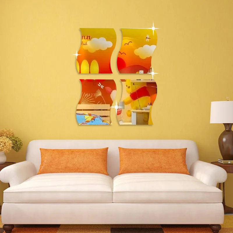 6 шт., зеркальные наклейки в форме волны